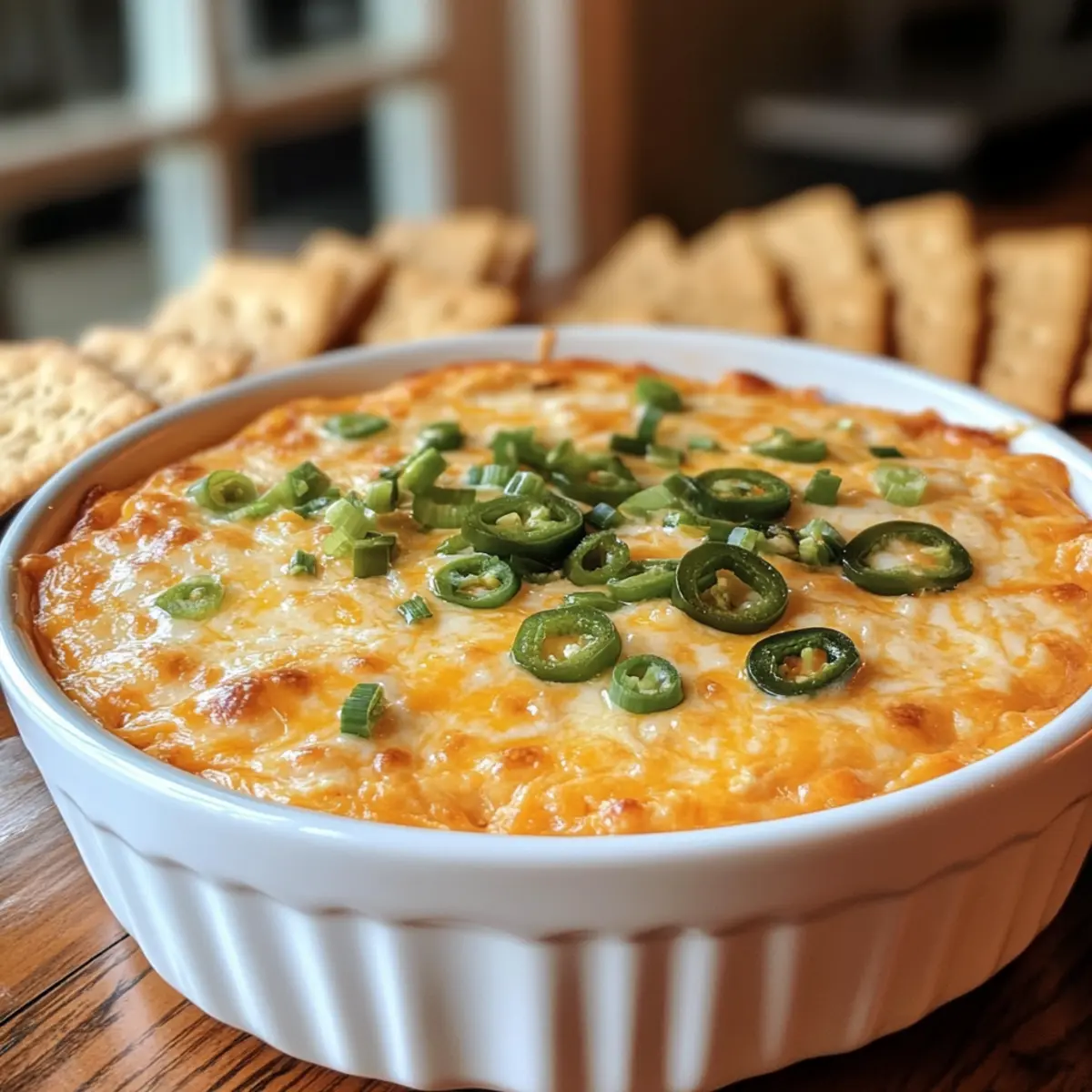Für eine besondere Note können Sie nach Belieben mit mehr Käse oder zusätzlichen Jalapeños garnieren. Diese einfache Garnitur erhöht den visuellen Reiz und lädt dazu ein, sofort hineinzugreifen. Der Alabama Feuercracker Dip wird somit zum echten Hingucker auf jeder Party.