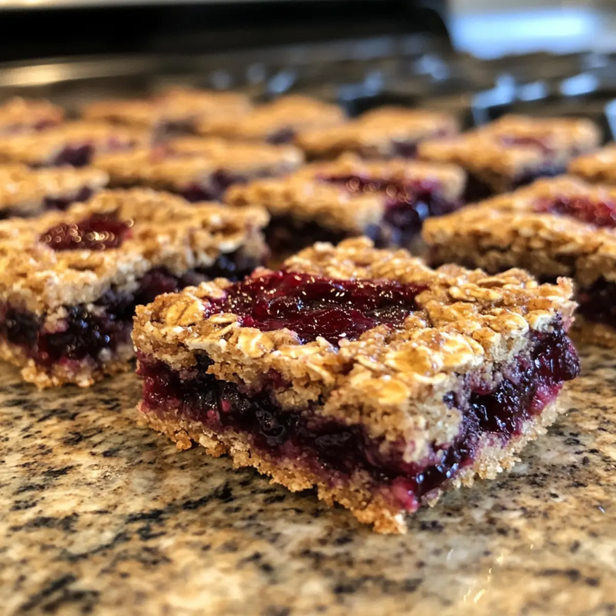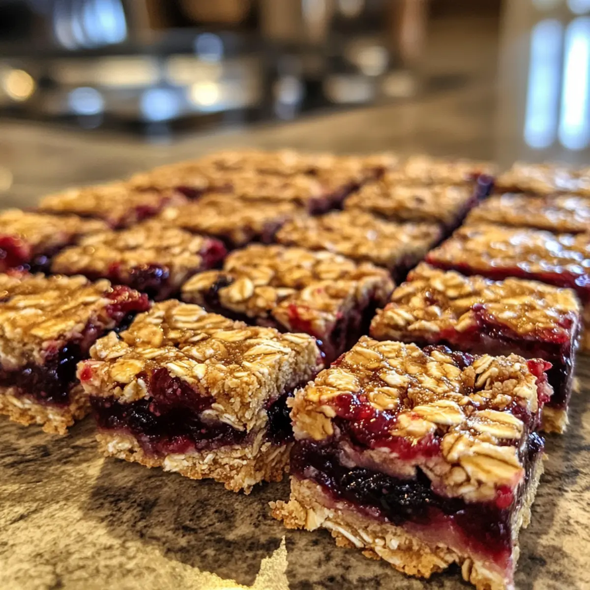 - Fruchtige Explosion: Vermenge 1 Tasse frischer Beeren (wie Heidelbeeren oder Himbeeren) statt der Marmelade für zusätzliche Textur und Frische. Sie verleihen dem Riegel eine fruchtige Note!