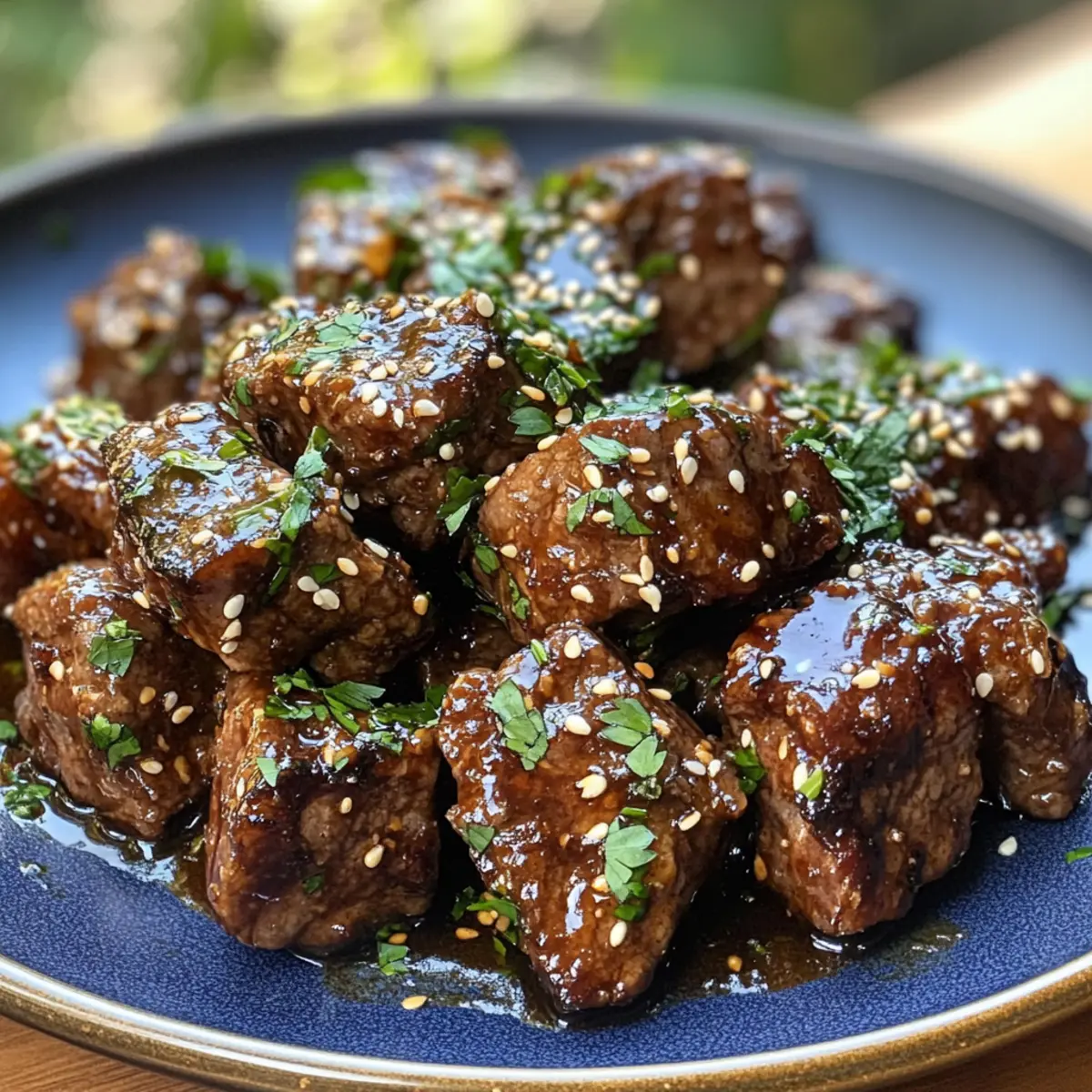 Glasiertes Klebriges Rindfleisch Häppchen für Genuss