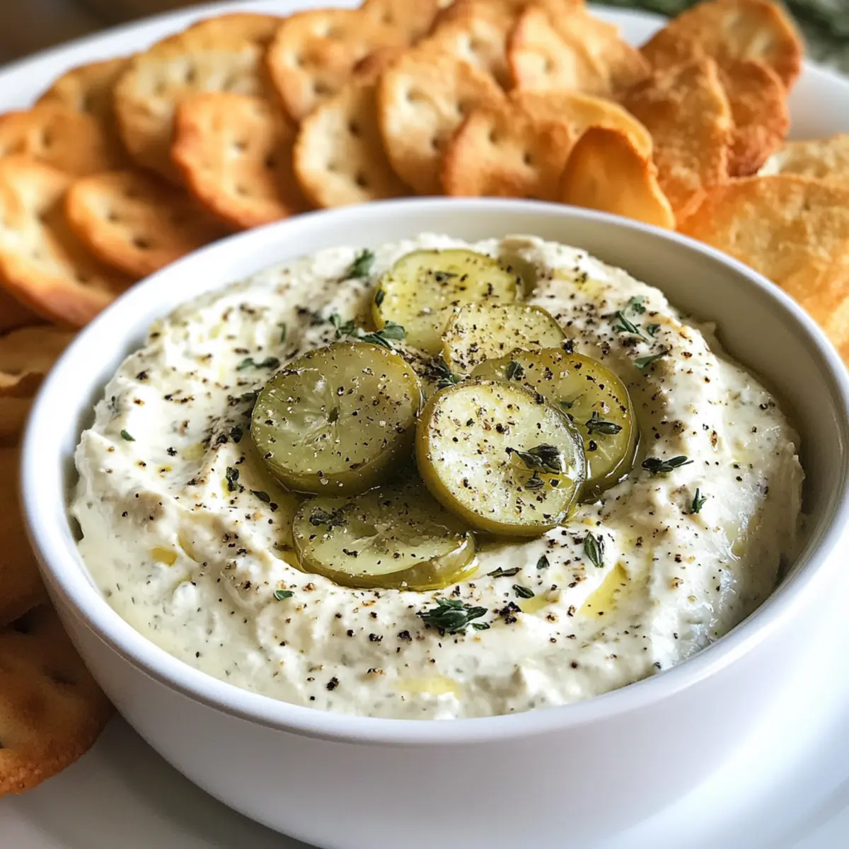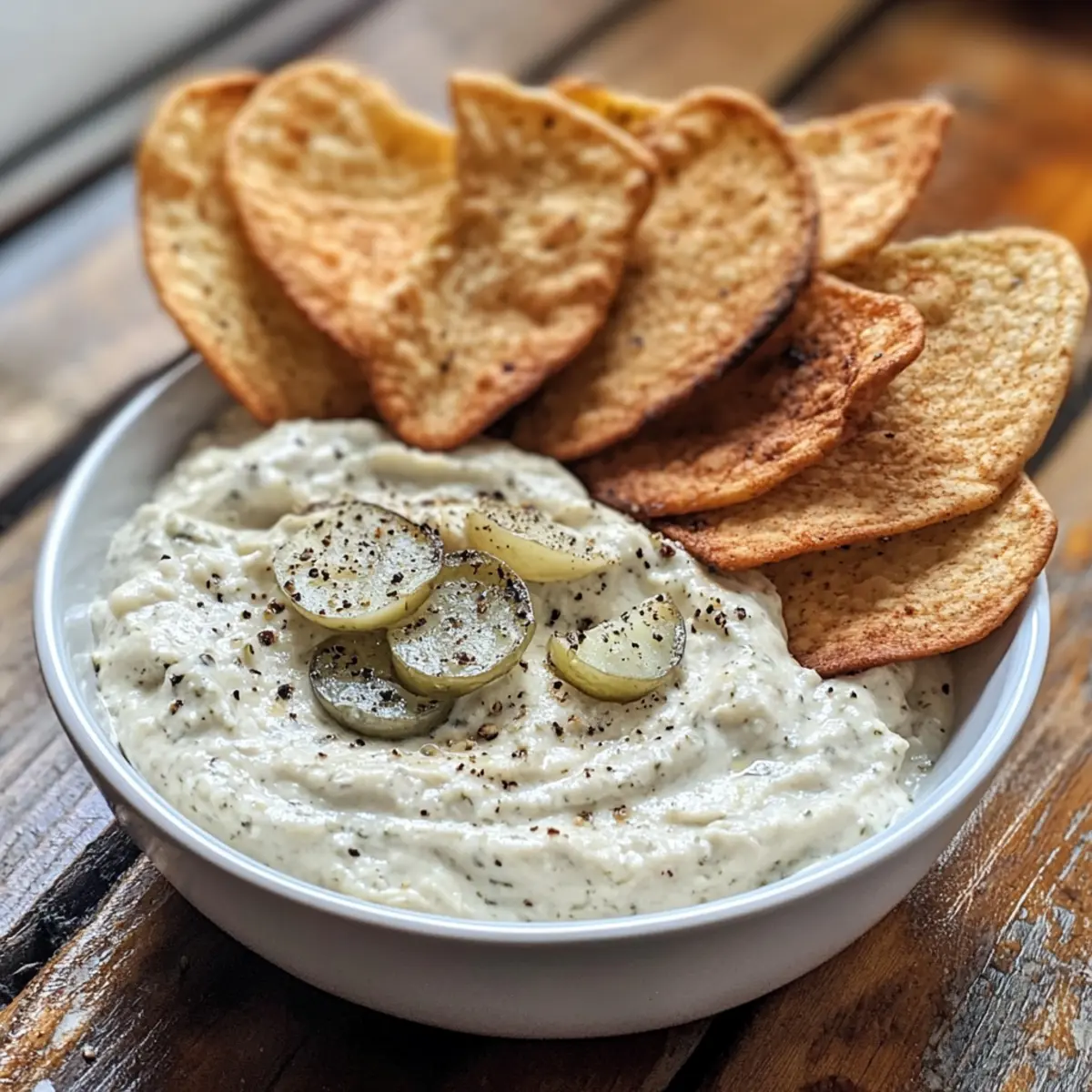 Pepperoncini Dip mit hausgemachten Bagel-Chips leckerer Snack