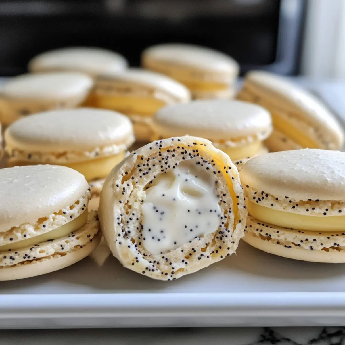 Zitronen-Mohn-Samen Macarons für den Sommergenuss