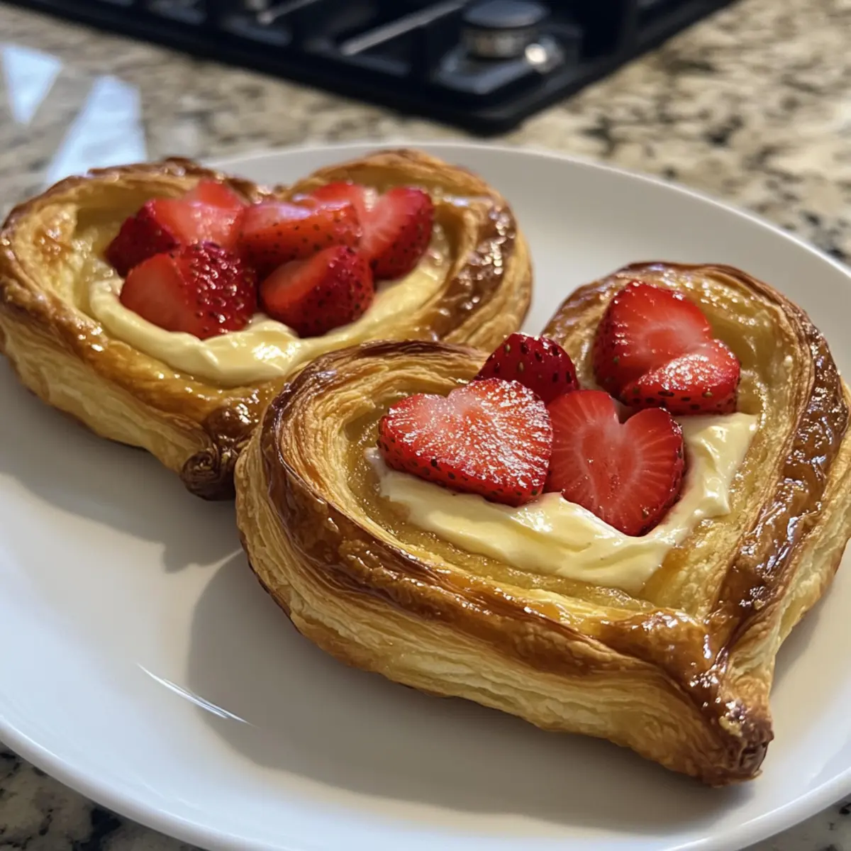 Erdbeer-Frischkäse-Herz-Danishes für deinen Brunch