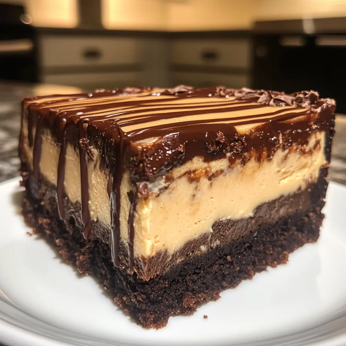 Erdnussbutter-Käsekuchen mit Brownieboden