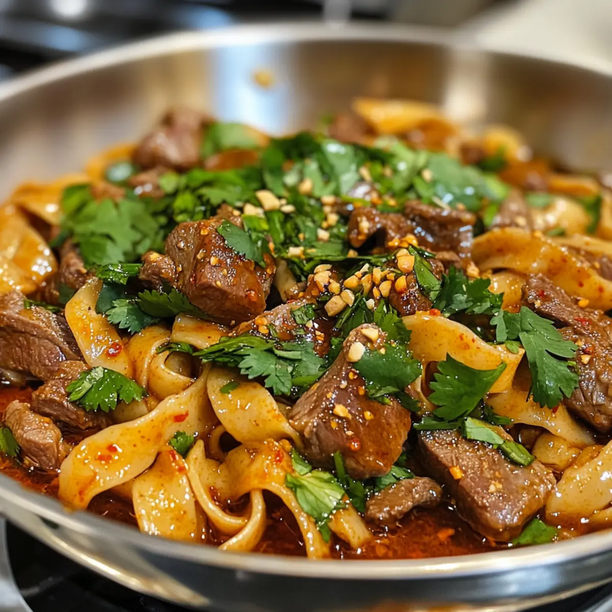 Kreuzkümmel Lamm Nudeln mit hausgemachten Nudeln