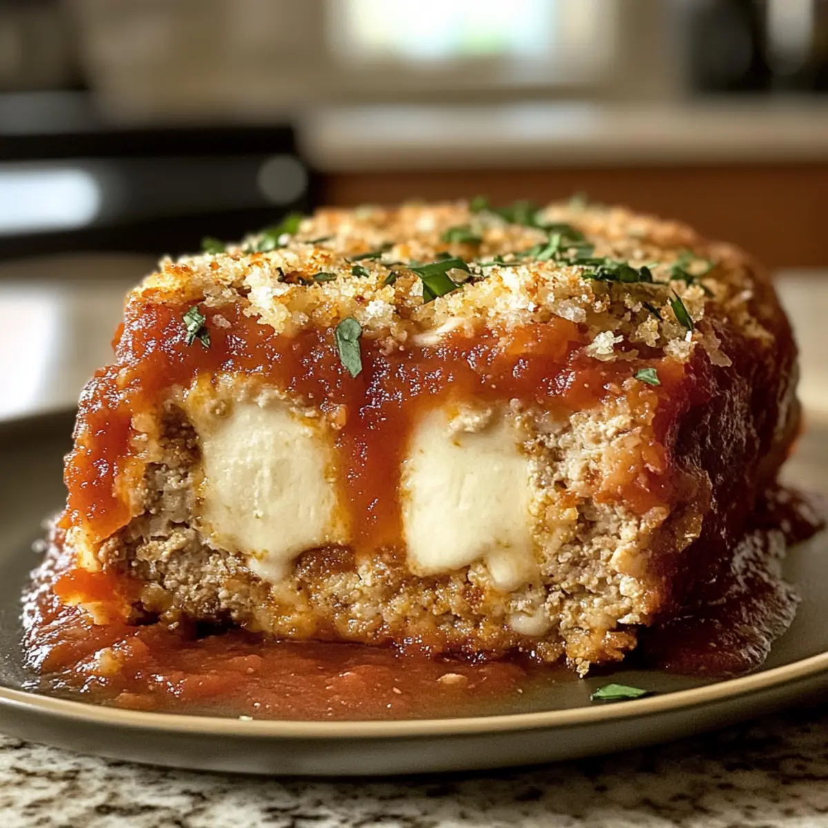 Parmesan Hähnchen Fleischlaib mit geschmolzenem Käse