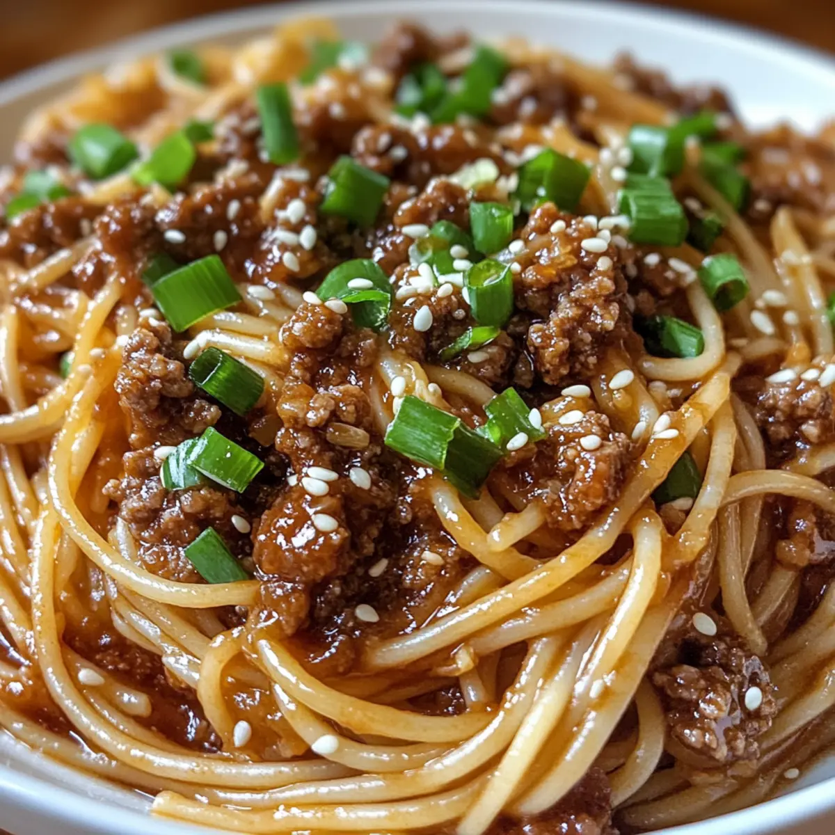 Asiatisch gewürztes Hackfleischspaghetti ganz schnell