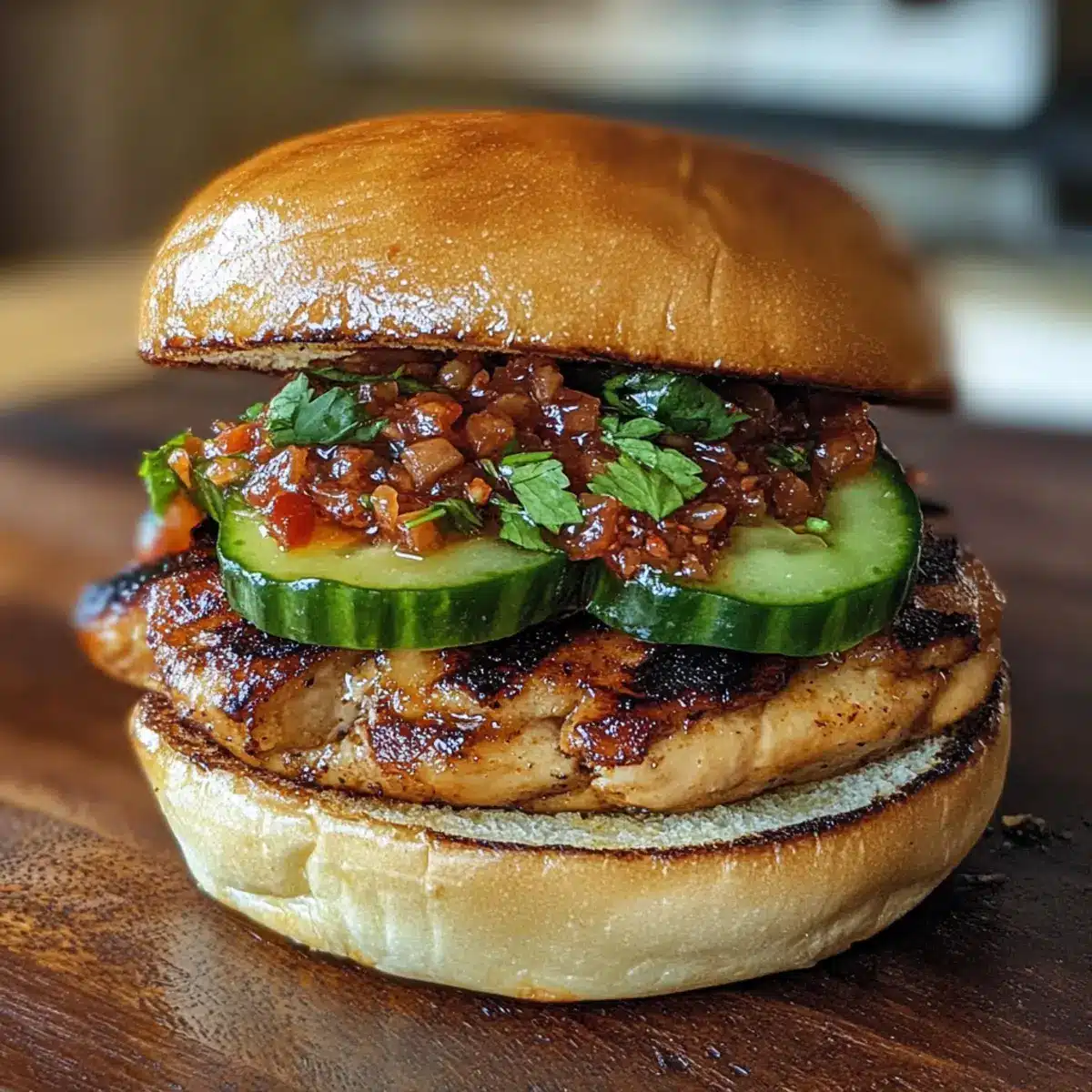 Hühnchenburger mit Kimchi-Bacon-Marmelade genießen