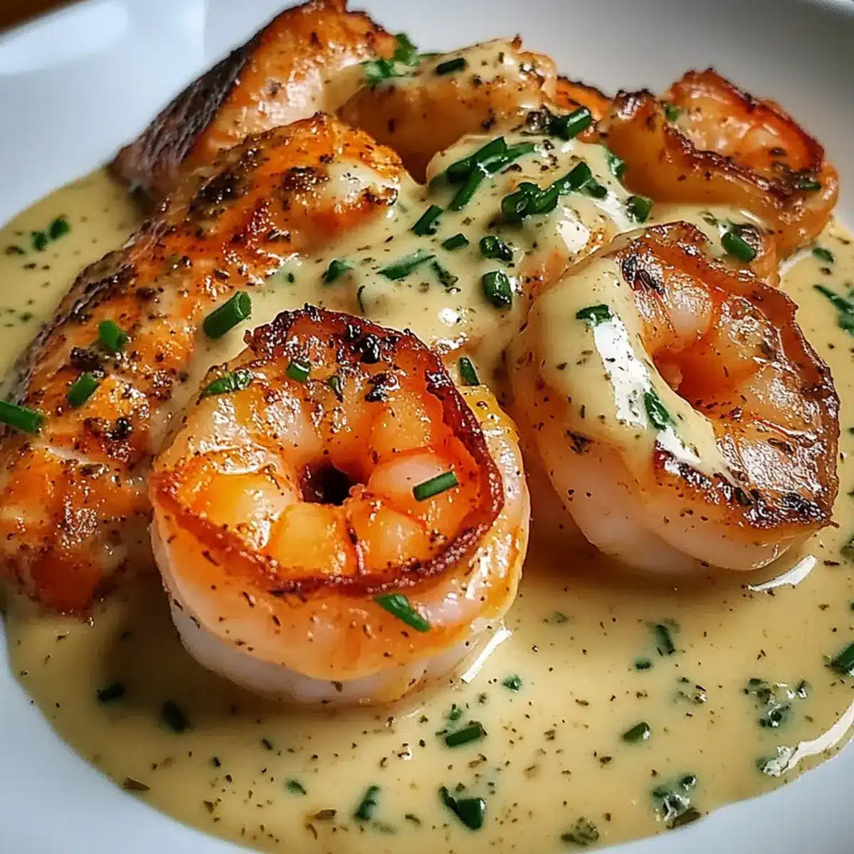 Cajun Garnelen und Lachs mit Knoblauchcremesauce