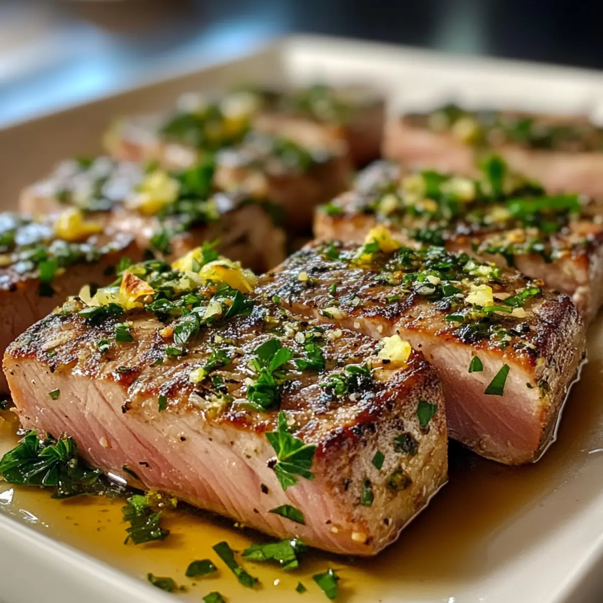 Gegrillte Thunfischsteaks mit Knoblauch-Kräuter-Butter