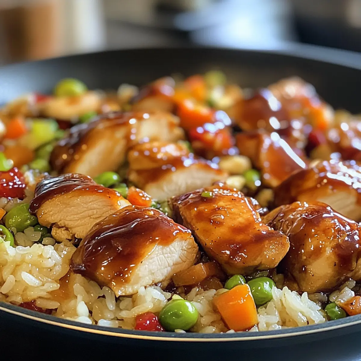 Honig BBQ Hähnchen Reis in einer Pfanne zubereiten