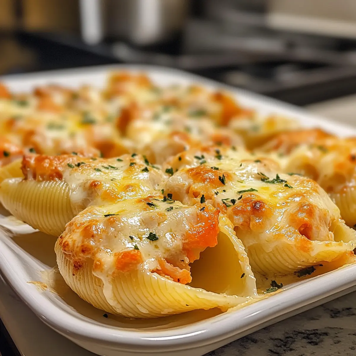 Cremige Meeresfrüchte gefüllte Muscheln für Genuss