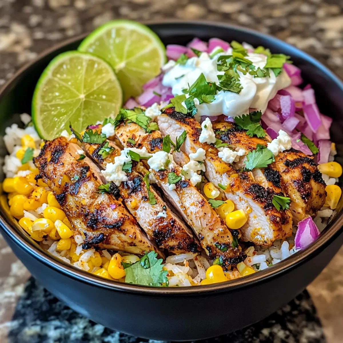 Strassenmais-Hühnchen-Schüssel für schnelle Abendessen
