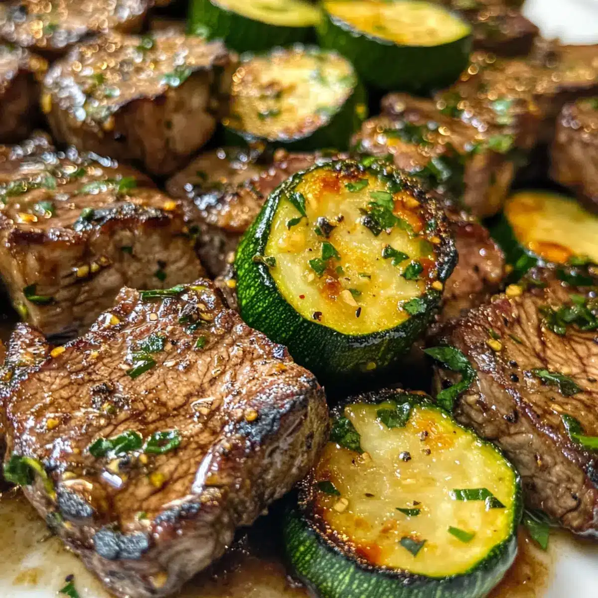Knoblauchbuttersteakbisse mit Zucchini in 15 Minuten