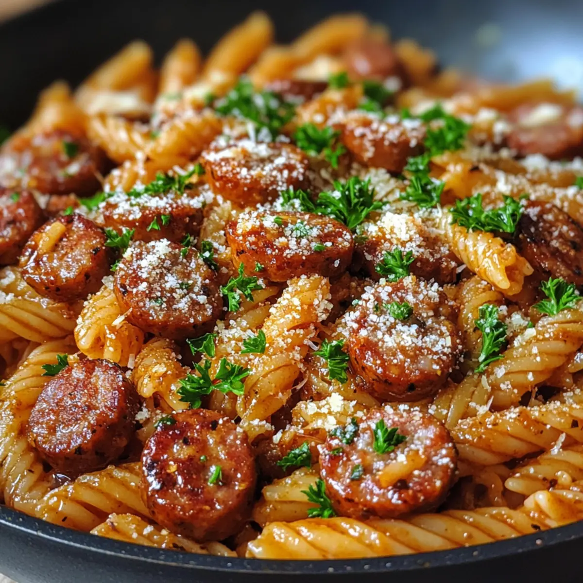 Honig Knoblauch Wurst Pasta Pfanne für schnelle Genussmomente