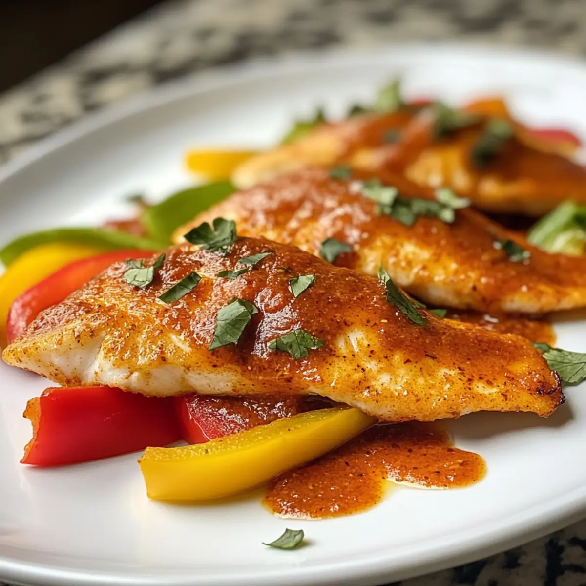 Herzhafter Tilapia in gerösteter Paprikasauce schnell gemacht