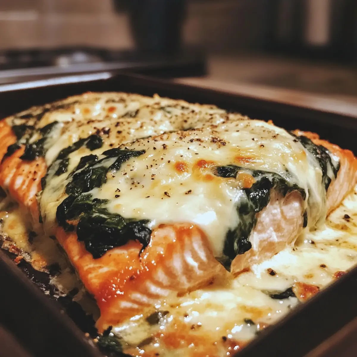 Gebratener Lachs mit Spinat und Mozzarella-Glück