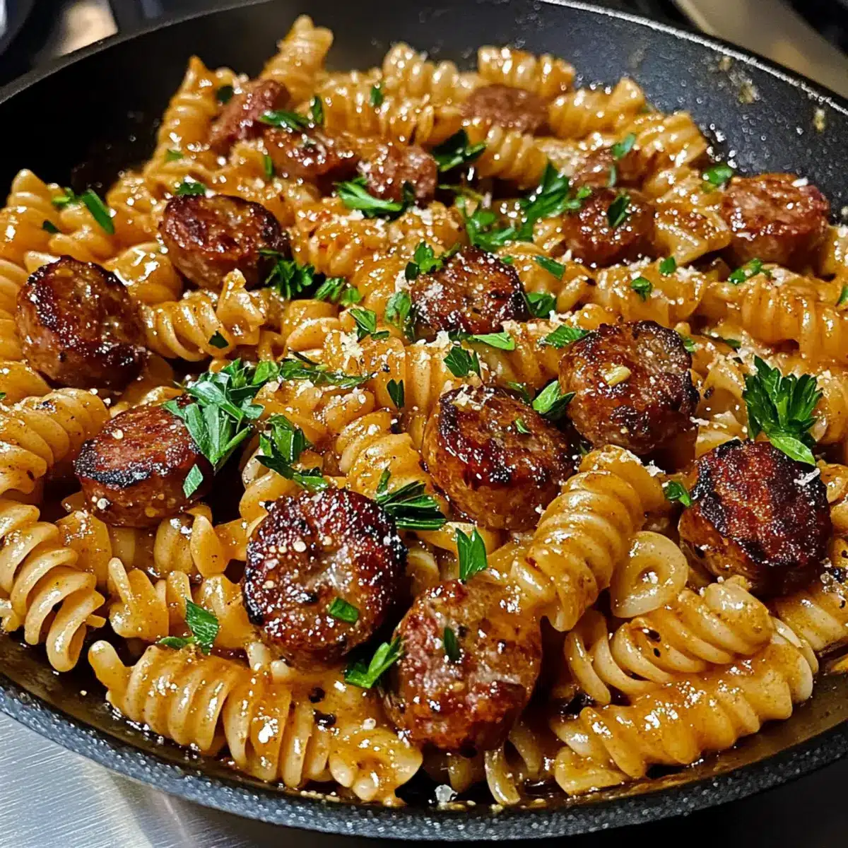 Honig-Knoblauch-Wurst-Pasta-Pfanne in 25 Minuten