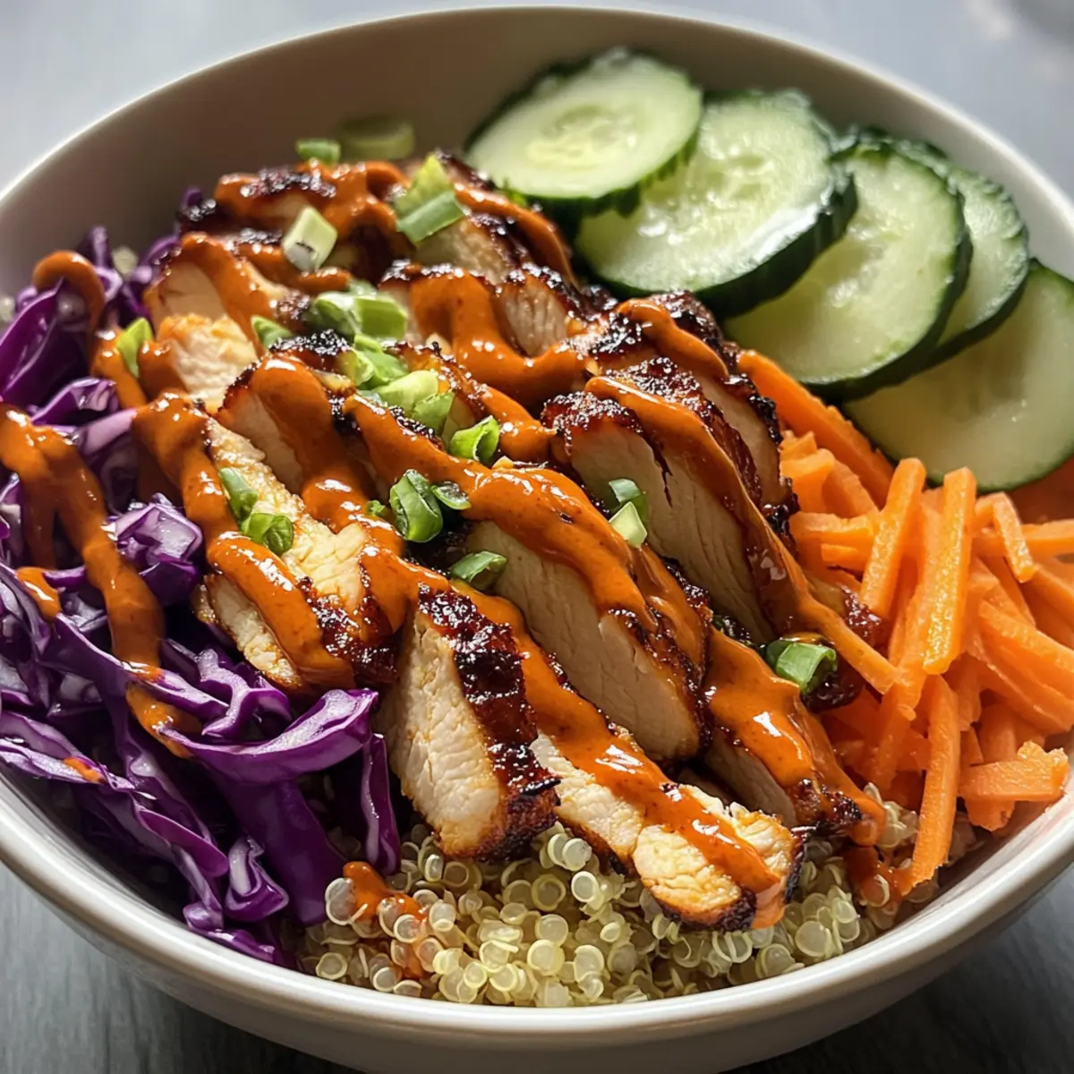 Süßer Chili Hähnchen Schüssel mit Kokos-Limetten-Sauce