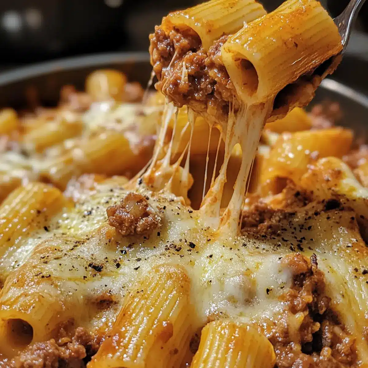 Überbackene Rigatoni mit Rindfleischragout genießen