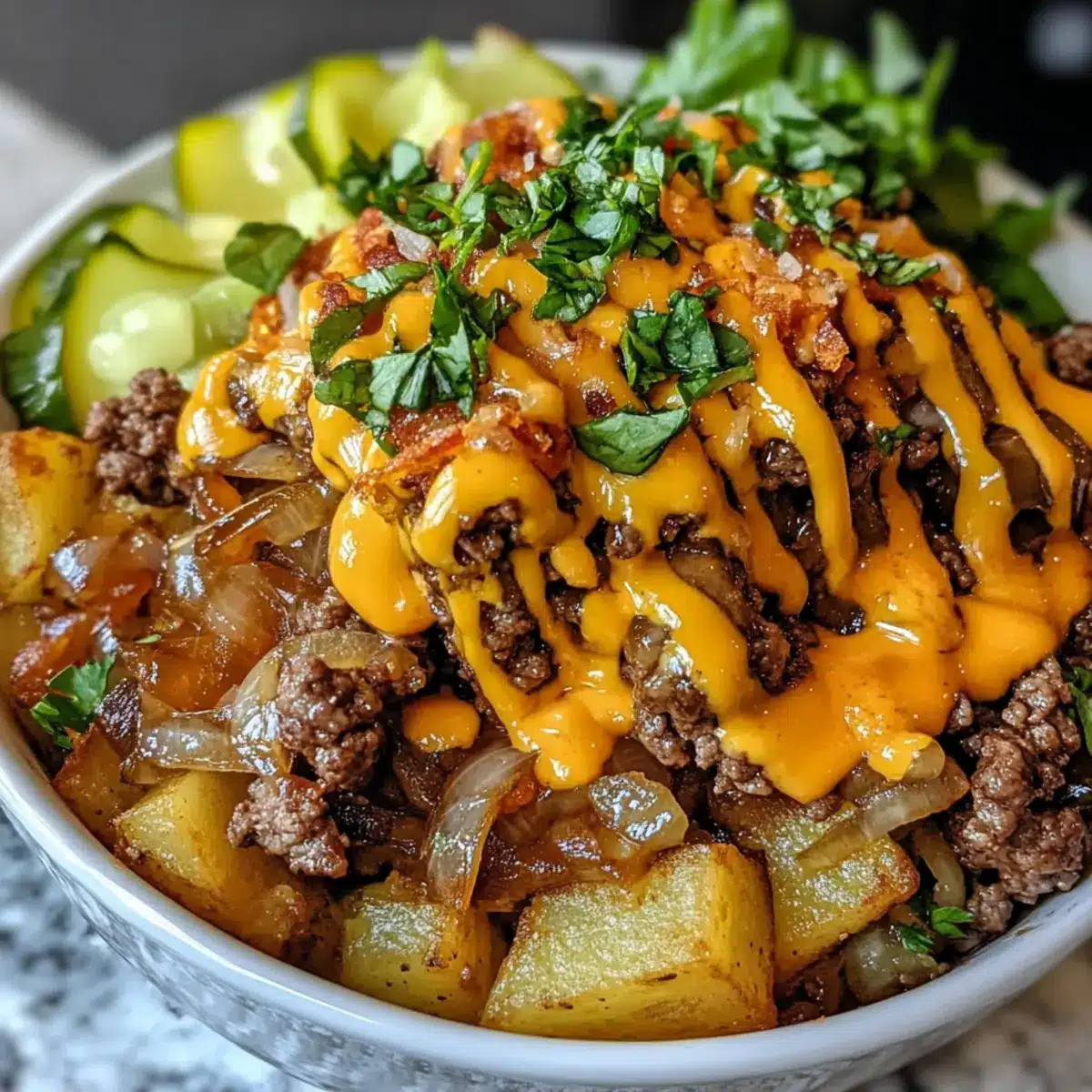 Herzhafter Smash Burger Schüssel für schnellen Genuss