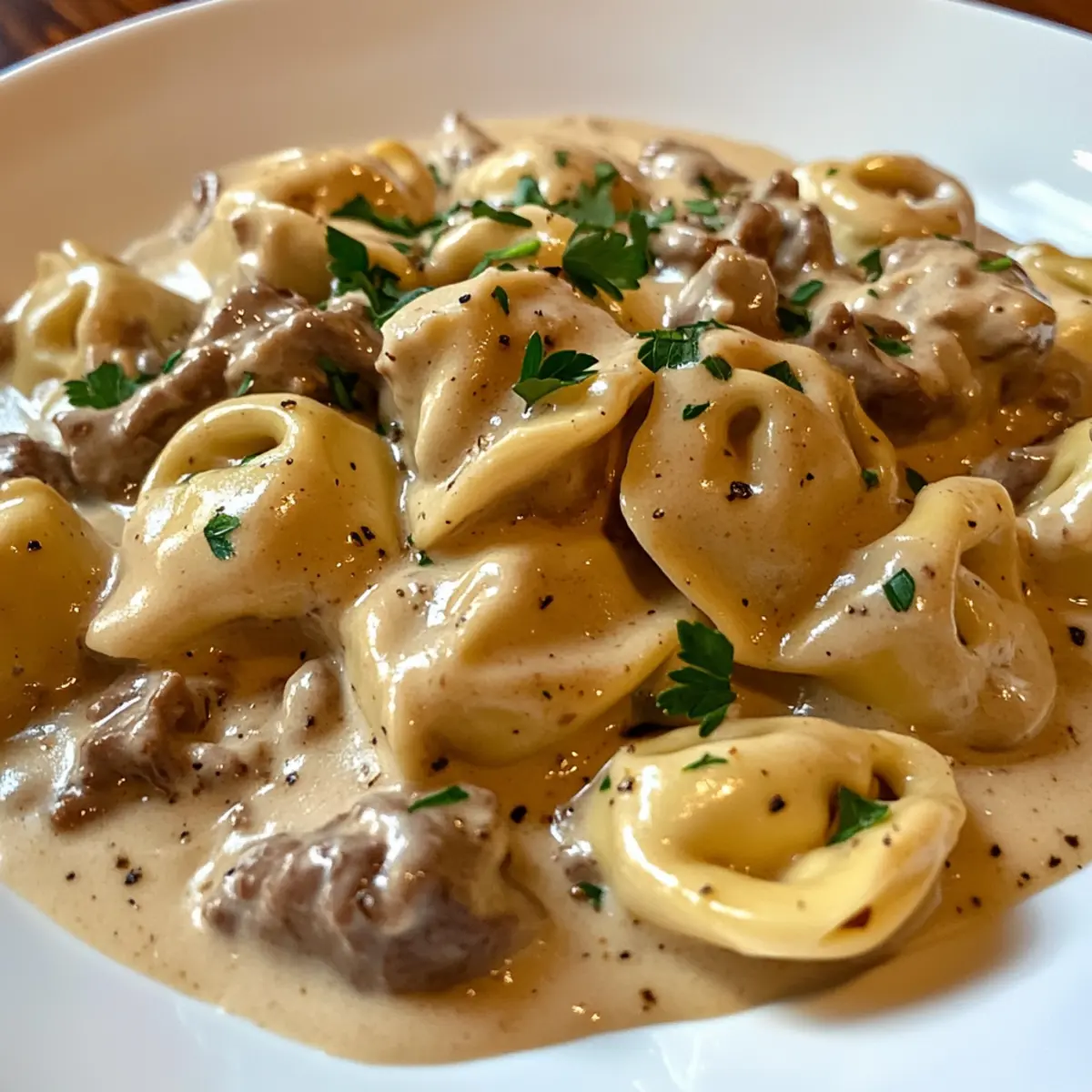 Schnelles Pfannenrinderstroganoff-Tortellini Rezept