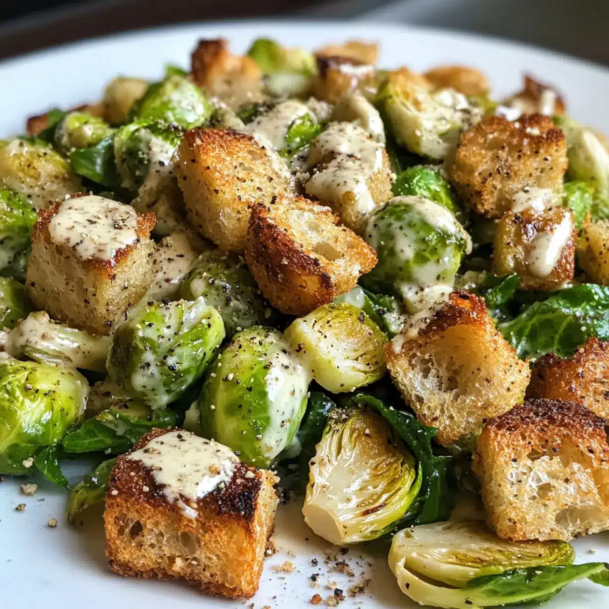 Gerösteter Rosenkohl Caesar Salat mit Tahini Dressing