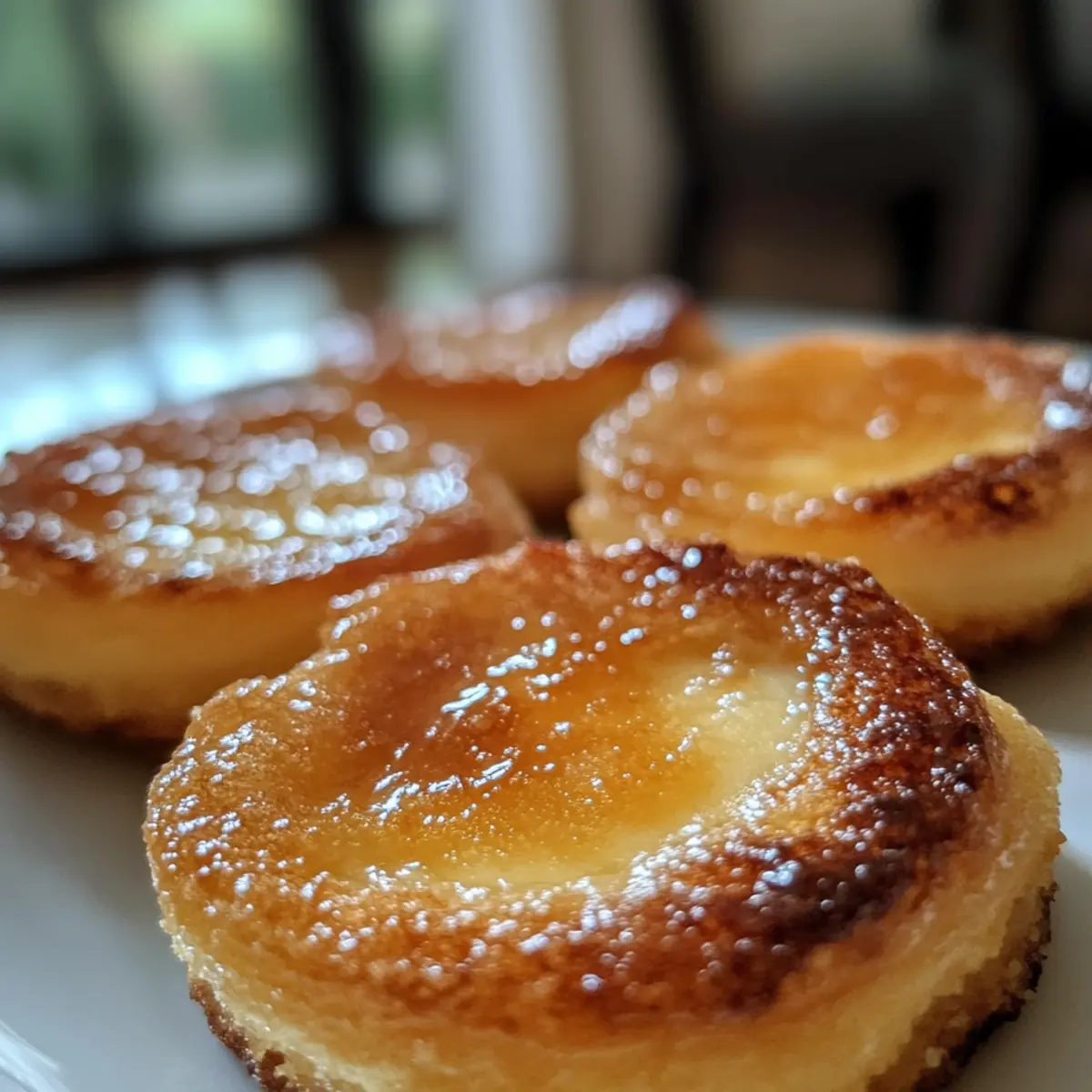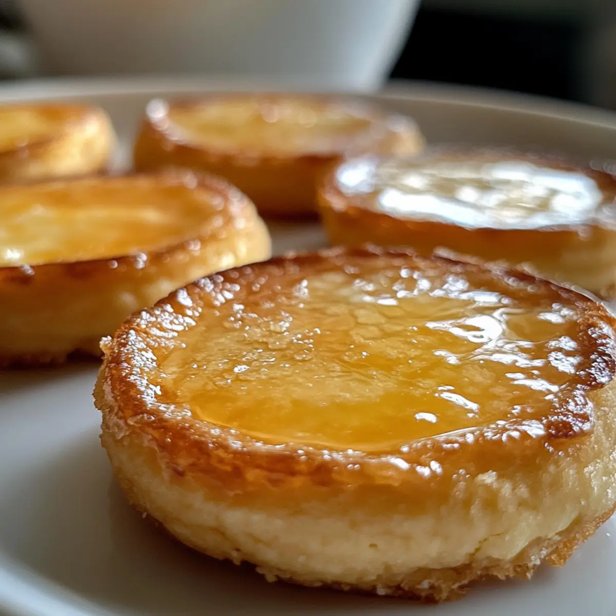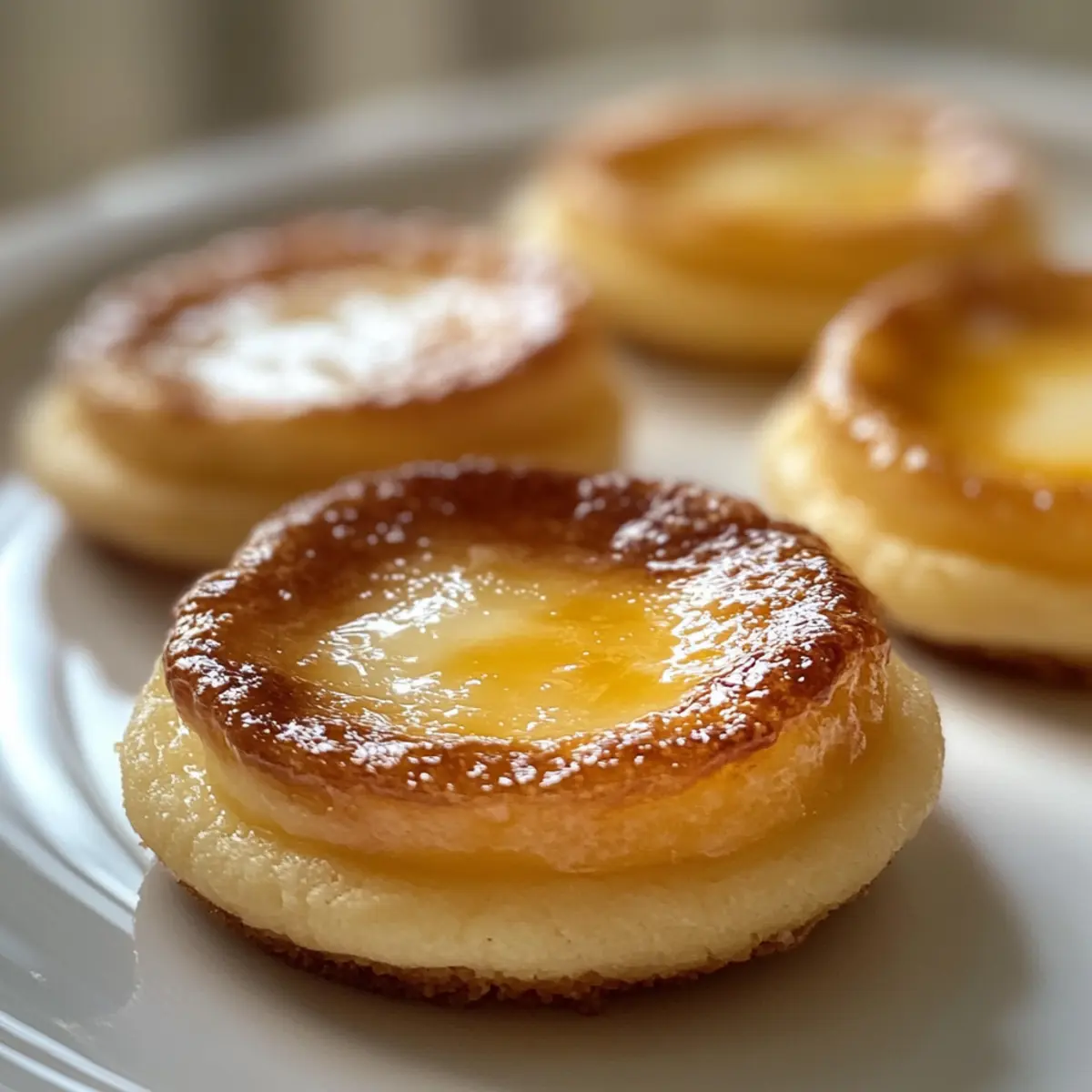 Lasse die plätzchen nach dem Karamellisieren auf Zimmertemperatur abkühlen, damit das Topping fest wird. Jetzt sind deine Creme Brûlée Plätzchen bereit, serviert zu werden – genieße die Mischung aus knuspriger Karamellschicht und cremigem Inneren!