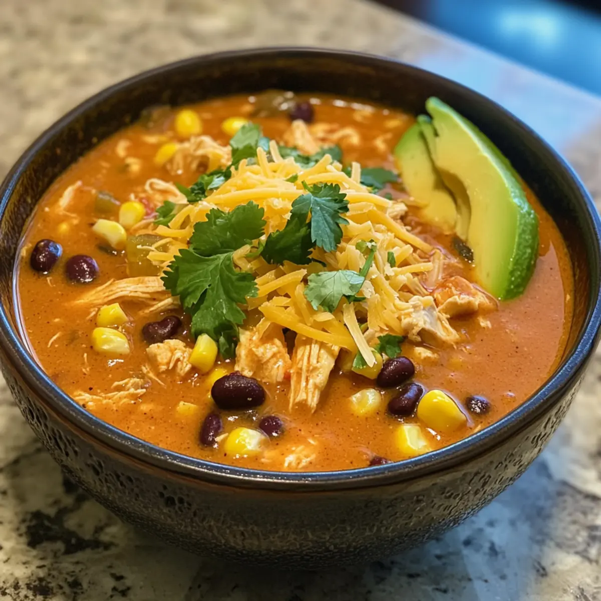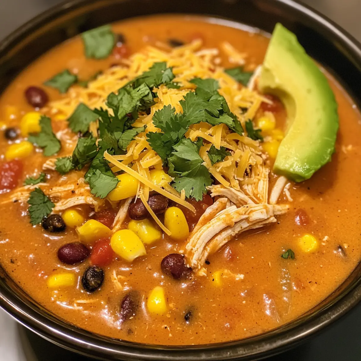 - Sahne-Ranch-Twist: Mische etwas Ranch-Dressing in die Suppe für eine cremige und würzige Note, die die Tex-Mex-Aromen hervorhebt.