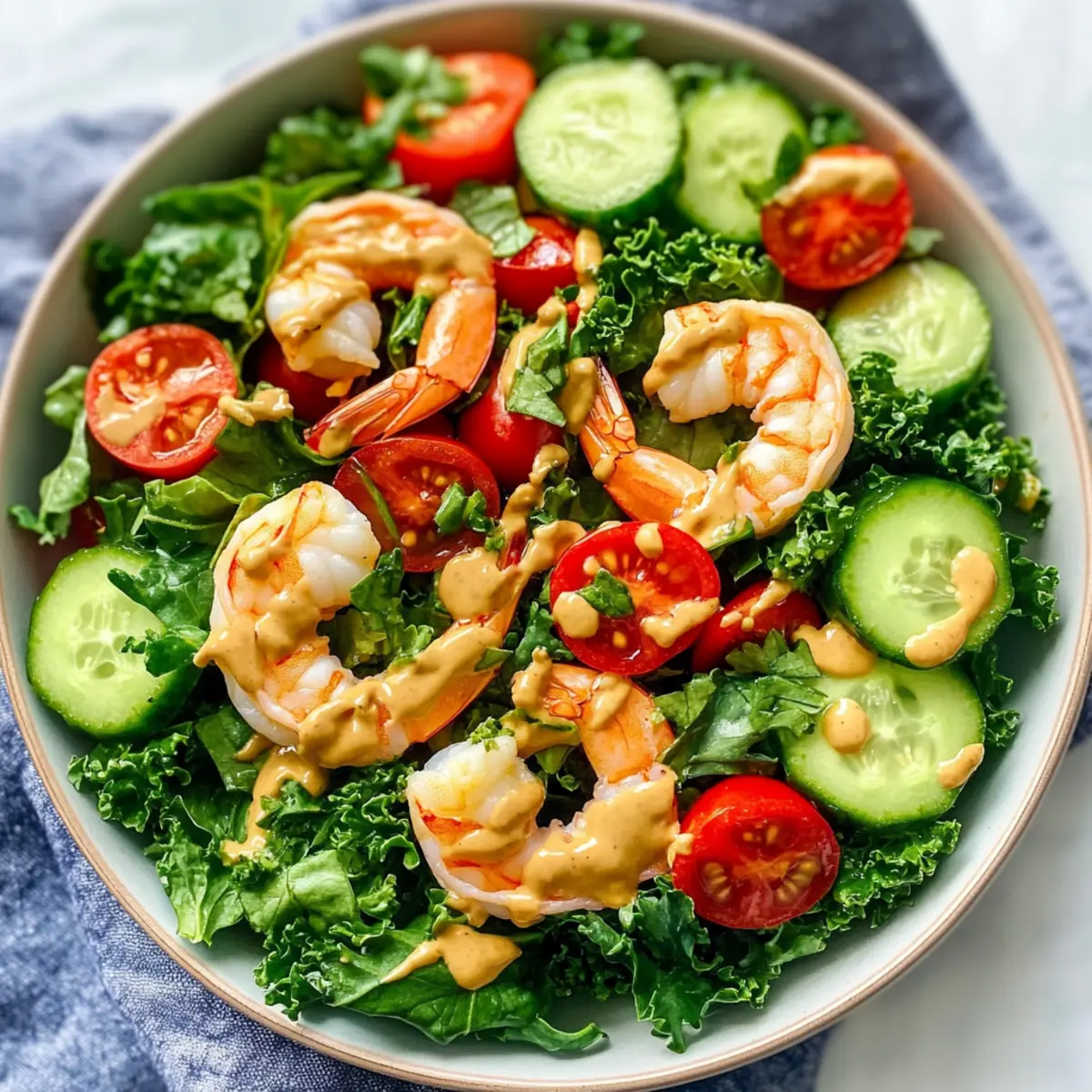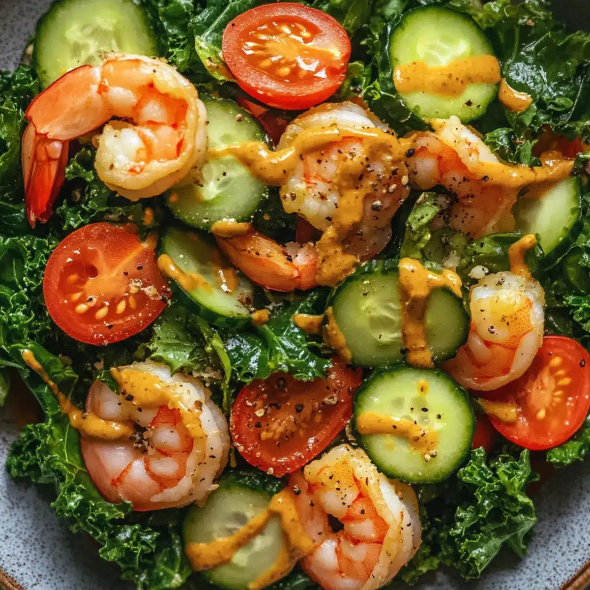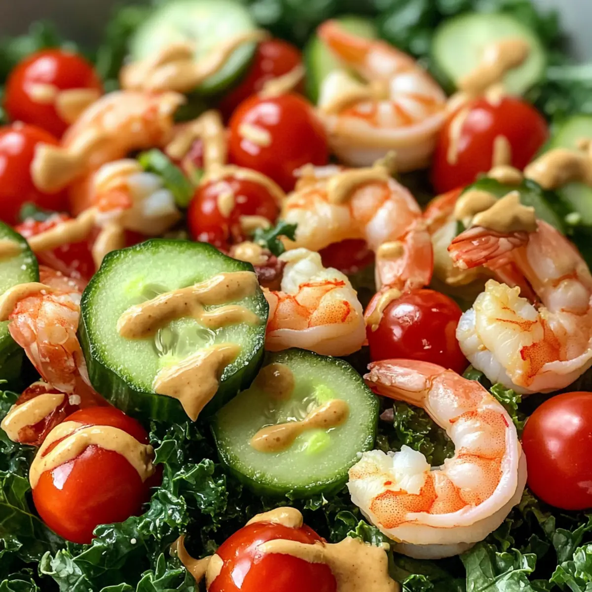 - Kombiniere in einer Schüssel die Gurken, Kirschtomaten, Kale und Quinoa, füge die gegrillten Garnelen hinzu und rühre vorsichtig um.