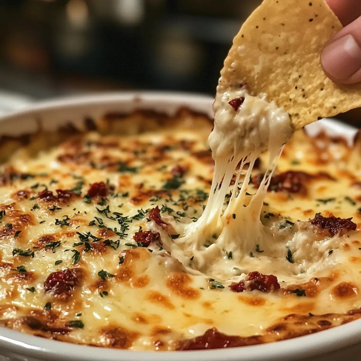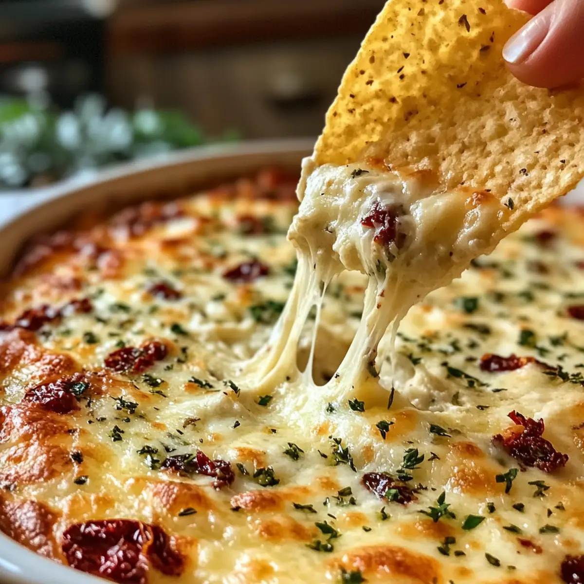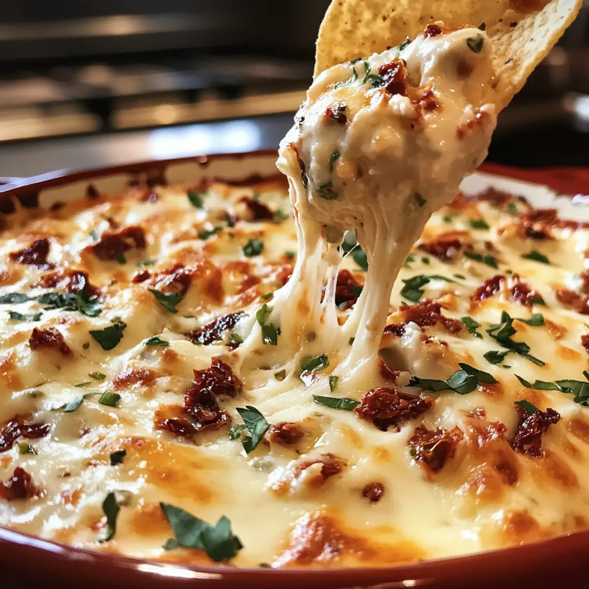 Dieser Dipp Käse Sonnentrocknete Tomaten ist ideal für die Vorbereitung im Voraus! Du kannst die gesamte Mischung bis zu 24 Stunden im Voraus zubereiten und im Kühlschrank aufbewahren, um Zeit zu sparen. Mische einfach alle Zutaten in einer Schüssel und verteile die Mischung in einer ofenfesten Form. Achte darauf, die Oberfläche gut abzudecken, um Austrocknung und Verfärbungen zu vermeiden. Kurz vor dem Backen heizst du den Ofen auf 190°C vor und backst den Dipp für 18 bis 20 Minuten, bis er goldbraun und blubbernd ist. So hast du einen köstlichen Dip, der genauso lecker wie frisch zubereitet schmeckt, und der perfekte Begleiter für gesellige Abende ist!