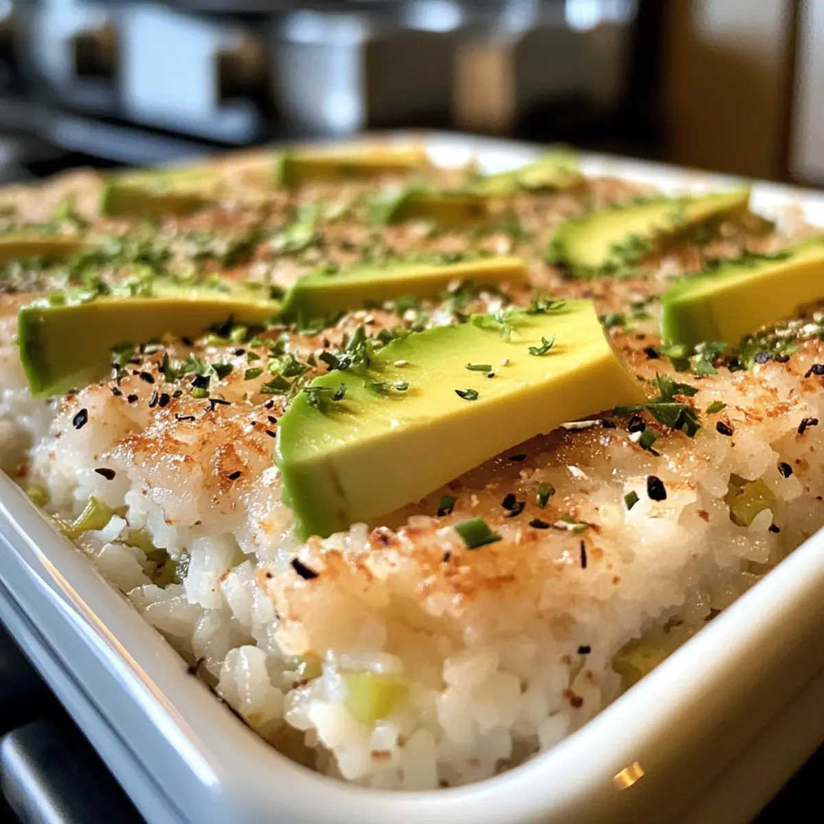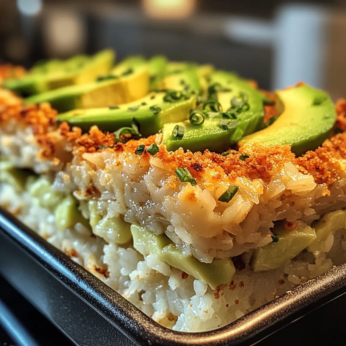 Köstlicher Genuss: Dieser Auflauf bietet das Beste aus zwei Welten – das Herz eines Sushi-Rolls kombiniert mit der Bequemlichkeit einer Casserole.