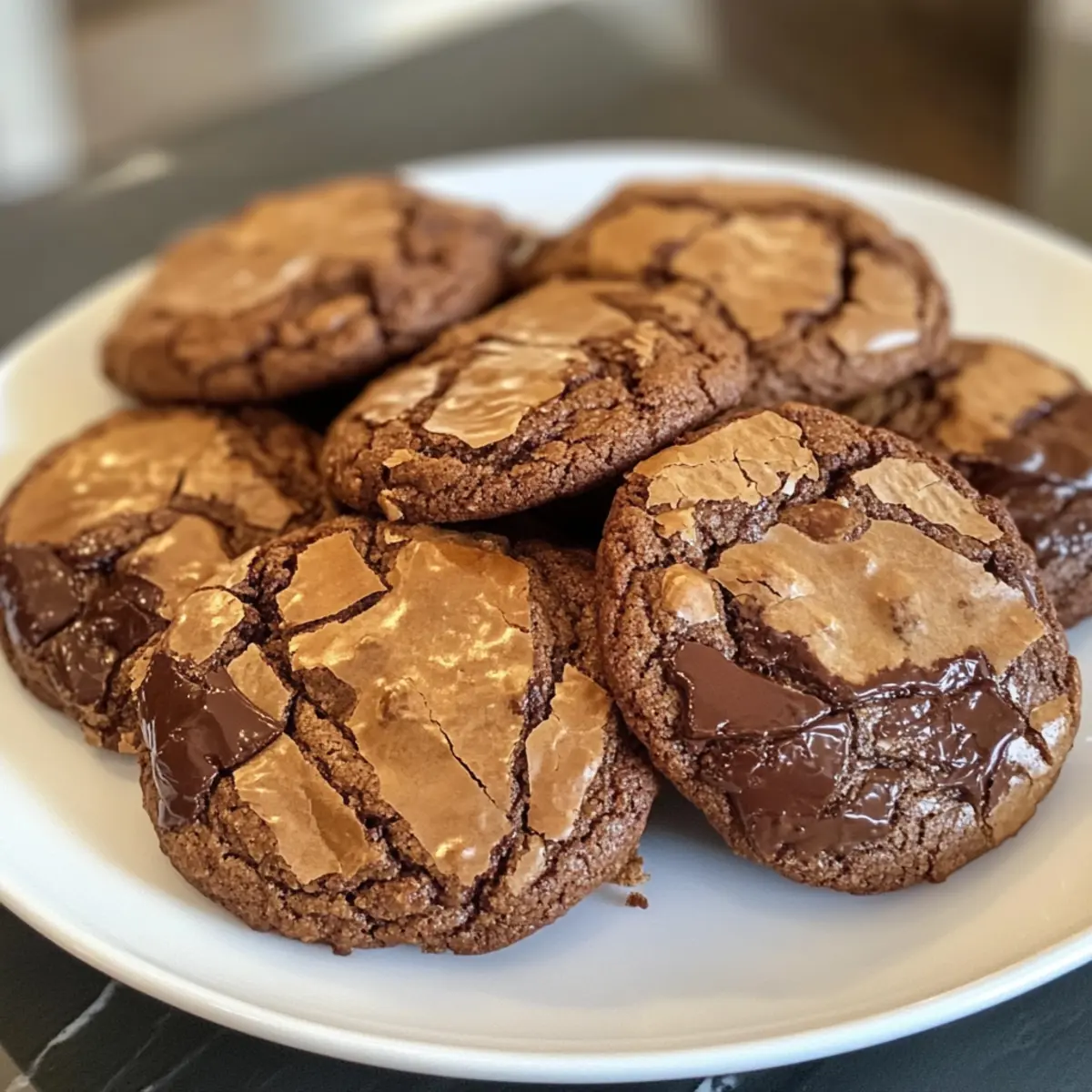 Backe die Kekse für 10-12 Minuten im vorgeheizten Ofen. Achte darauf, die Backbleche nach der Hälfte der Backzeit zu drehen, damit die Erdnussbutter-Brownie-Kekse gleichmäßig backen. Sie sollten fest am Rand, aber in der Mitte noch leicht weich sein – perfekt für einen zähen Biss!