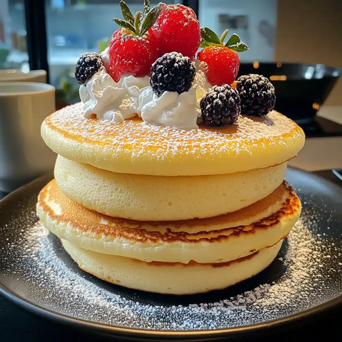 Genieße die Fluffy Japanischen Soufflé-Pfannkuchen und lass dich von ihrer himmlischen Textur überraschen!