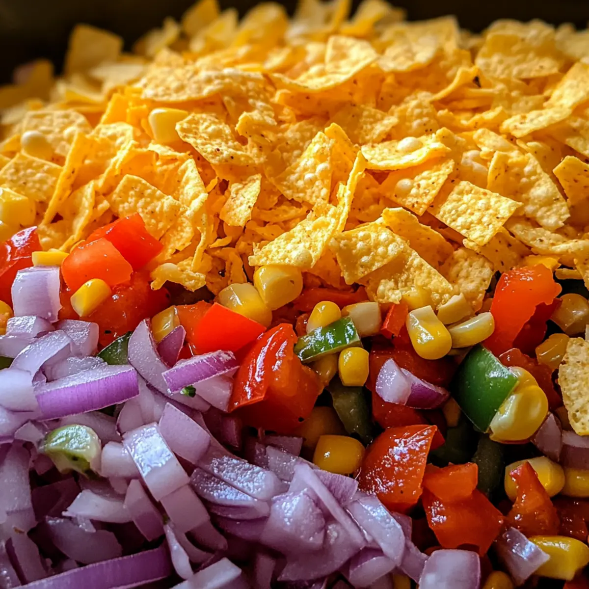 Knackige Textur: Die Kombination aus Fritos und frischem Gemüse sorgt für einen unwiderstehlichen Crunch, der deinen Gästen garantiert Freude bereiten wird.