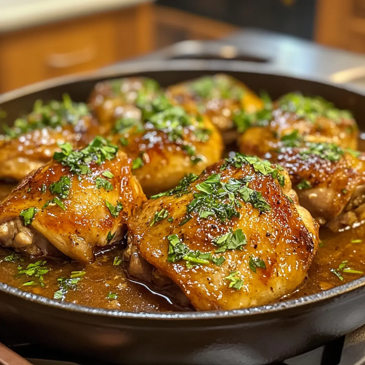 Stellt den Topf in den vorgeheizten Ofen und lasst das Geschmorte Catalina-Hühnchen für etwa 45 Minuten backen. Danach nehmt den Deckel ab und backt das Hühnchen für weitere 20-25 Minuten, bis die Sauce eindickt und eine schöne Karamellisierung aufweist.