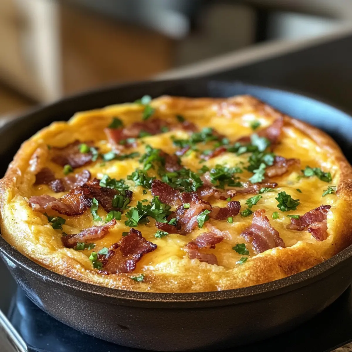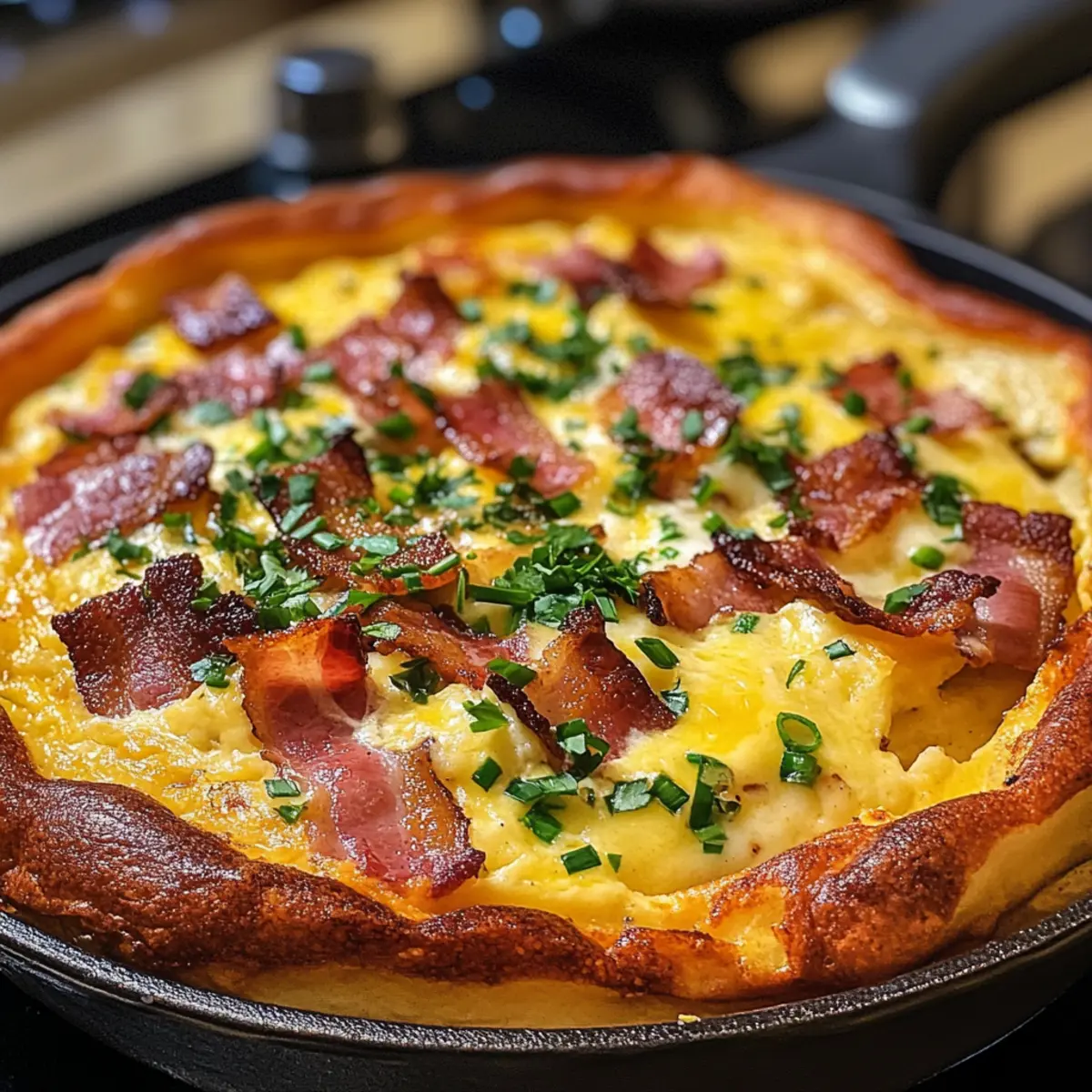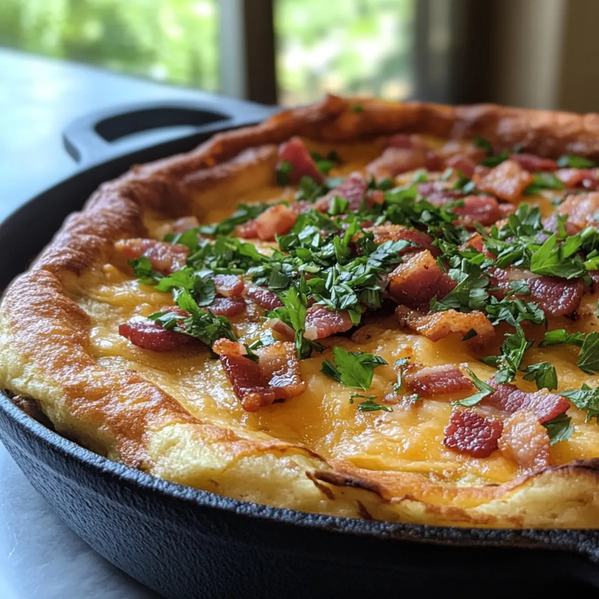 Herzhafter Cheddar- und Speck-Dutch Baby für Frühstücksfreunde