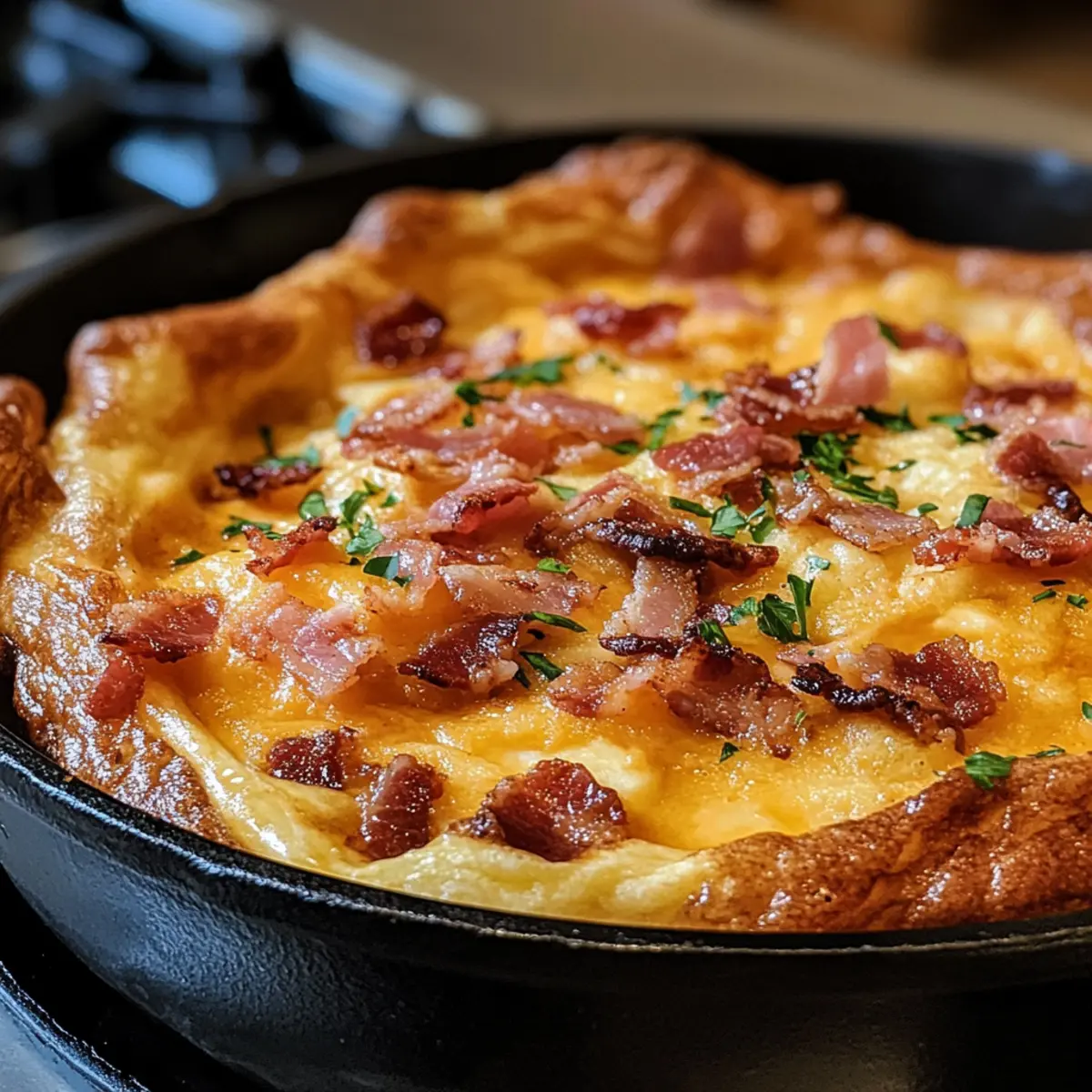 Herzhafter Cheddar- und Speck-Dutch Baby Genuss