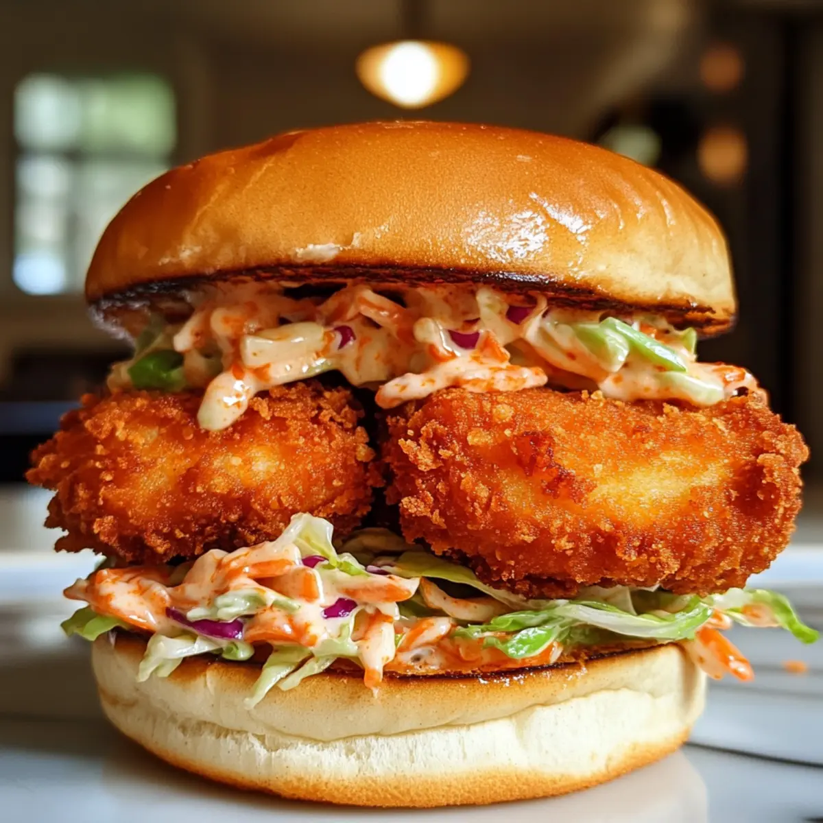 - Schärfe anpassen: Wenn du es schärfer magst, erhöhe die Menge an Cayennepfeffer in der Panade oder füge einige in Essig eingelegte Jalapeños zum Slaw hinzu.