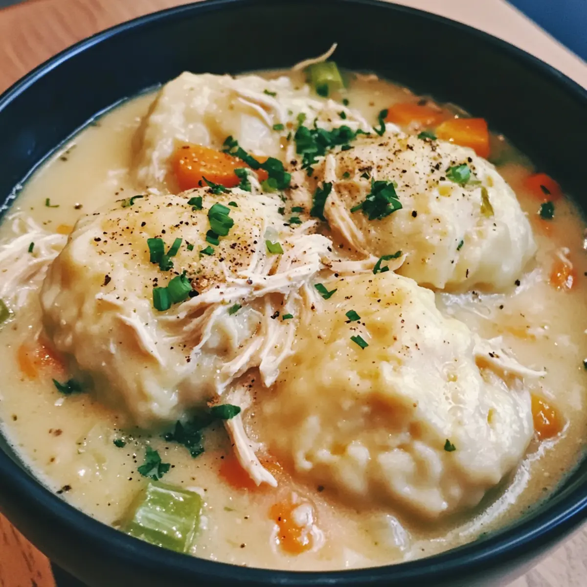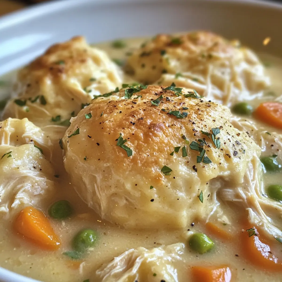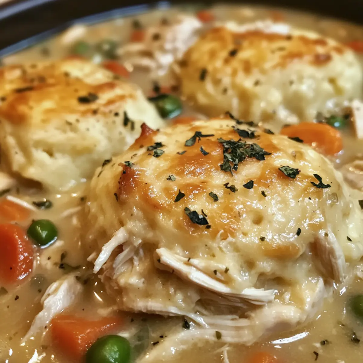 Tiefkühler: Friere nur die Hühner- und Brühe-Mischung für optimale Struktur ein; Knödel können beim Einfrieren ihre Textur verlieren. Füge frische Kekse bei der Servierung hinzu.