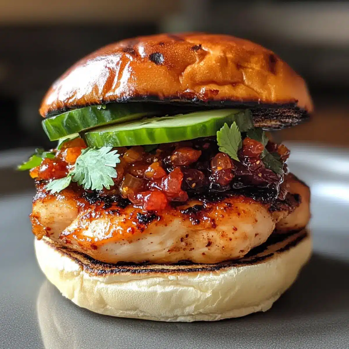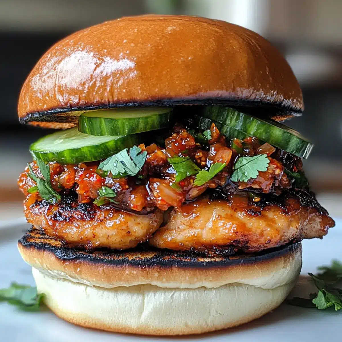 Hühnchenburger mit Kimchi-Bacon-Marmelade genießen