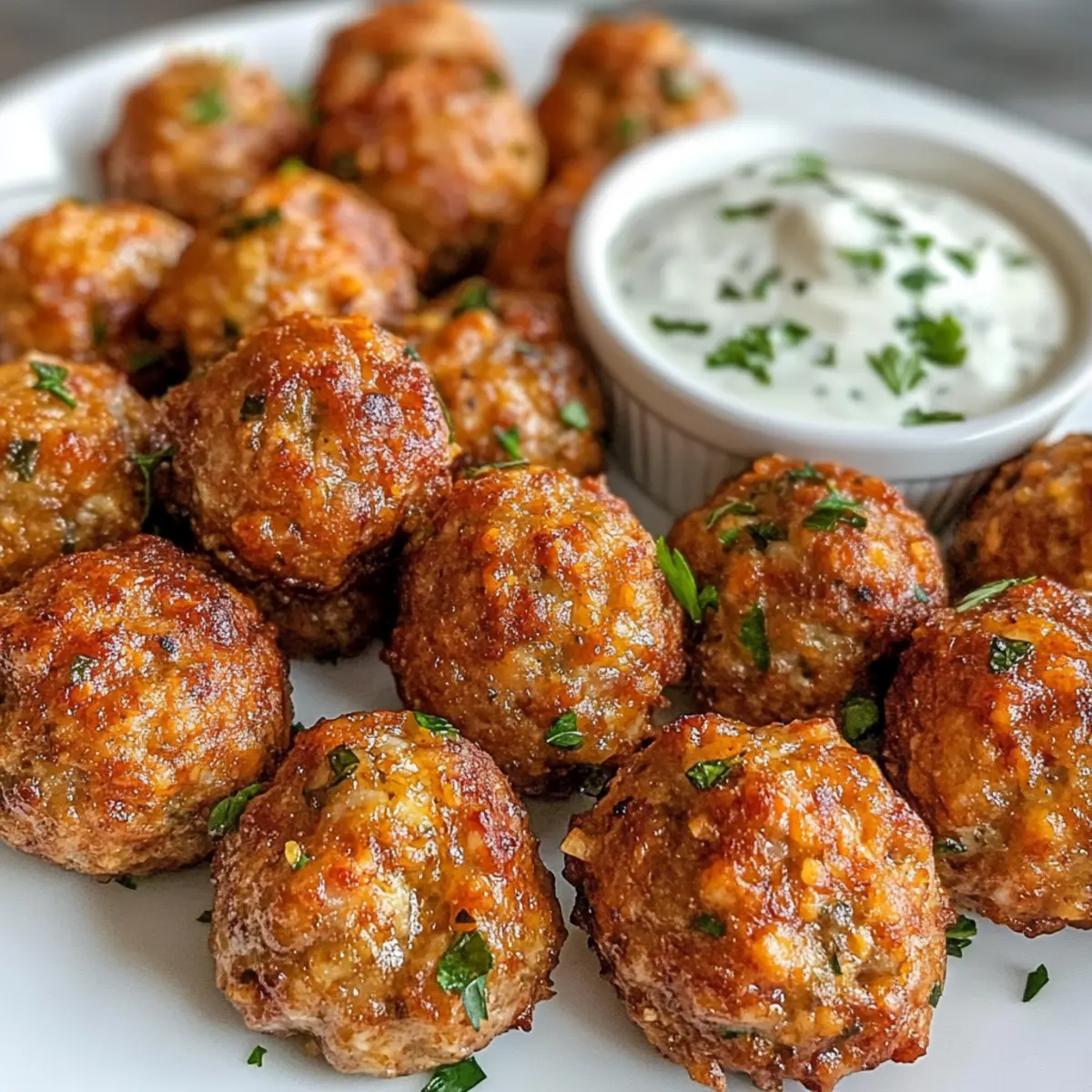 - Cremige Ranch-Dip: Dieser klassische Dip bietet eine erfrischende Abwechslung zur Schärfe der Wurstbällchen und ergänzt deren Aromen. Ideal für den perfekten Dip!