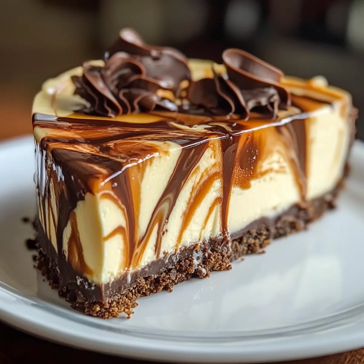 Luxuriöser Genuss: Der Karamell Schokoladen Kaffee Käsekuchen vereint drei unwiderstehliche Aromen in einem einzigen Stück – er ist ein Fest für die Sinne!