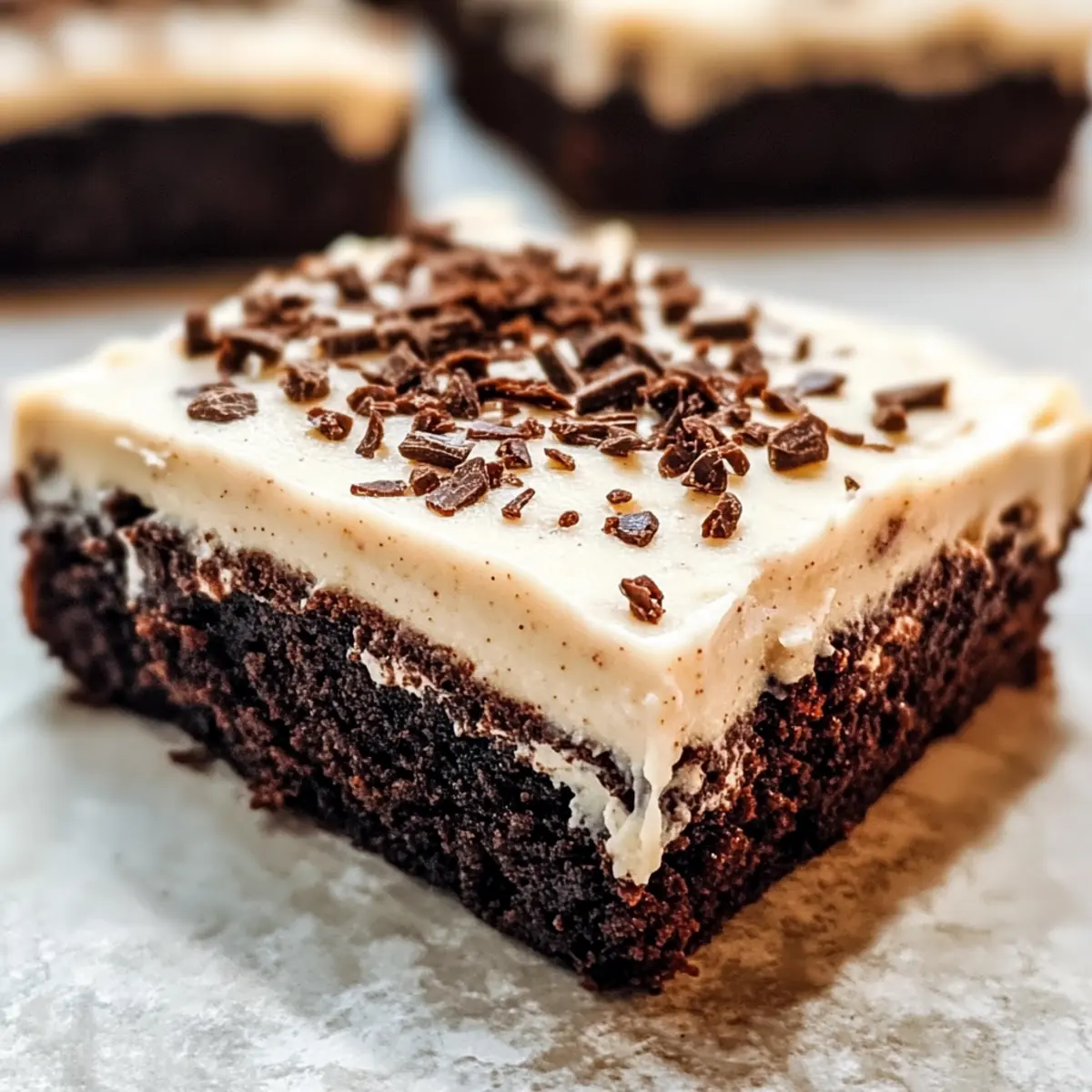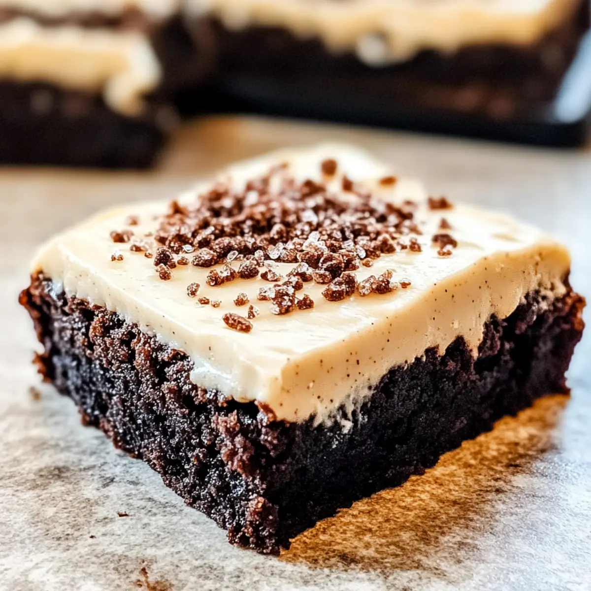 Festliche Präsentation: Das ei-nog Cream-Cheese-Frosting verleiht diesen Brownies einen festlichen Touch, der sie perfekt für Feiertage macht.