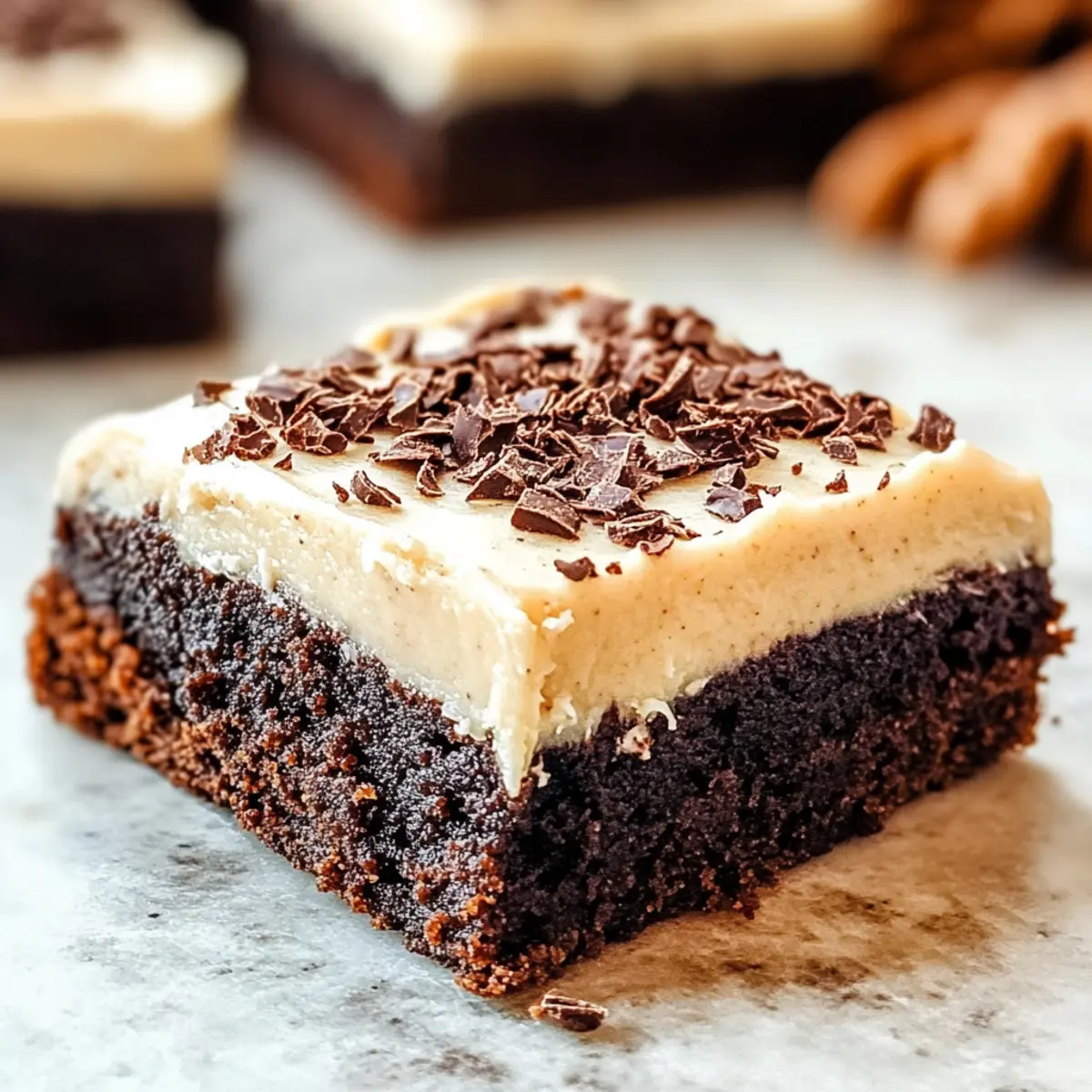 Verteile das fertige Frosting gleichmäßig auf den abgekühlten Brownies und bestäube sie nach Belieben mit etwas Muskatnuss oder Zimt für einen festlichen Touch. Lass deine Kreation zuerst etwas fest werden, um die Aromen zu intensivieren.