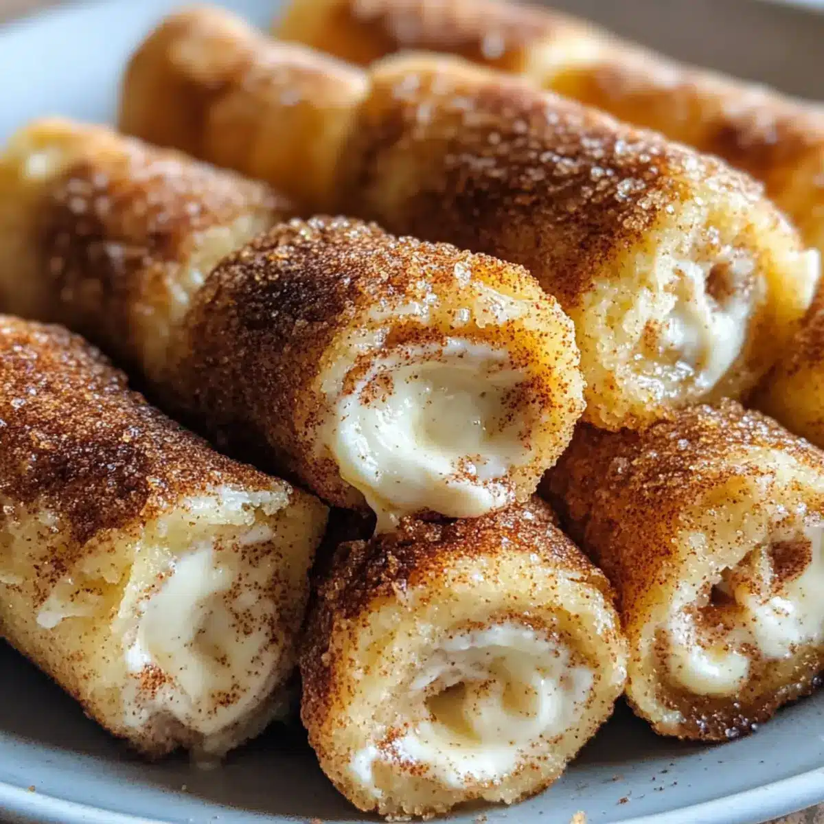 Erhitze die geschmolzene Butter und bestreiche jede Rolle mit einem Pinsel gründlich. Dies gibt dem Äußeren eine schöne goldene Farbe und sorgt für eine knusprige Textur. Tauche die mit Butter bestrichenen Rolle-Ups anschließend in die Zimt-Zucker-Mischung, sodass sie gleichmäßig bedeckt sind. So erhältst du eine herrlich süße Kruste über der cremigen Füllung.