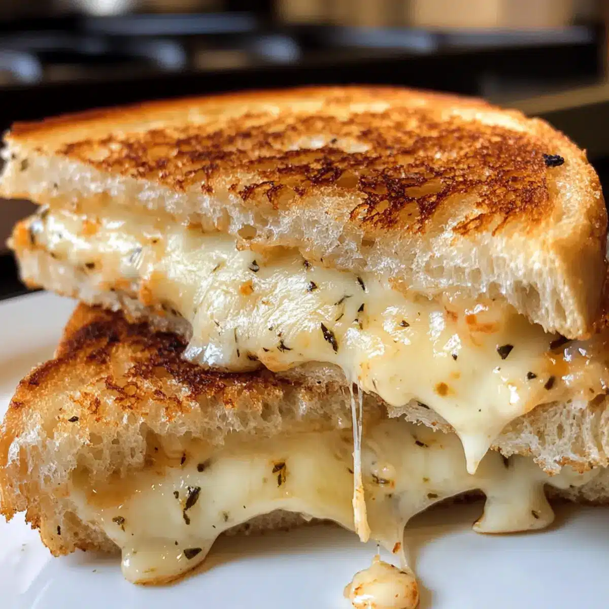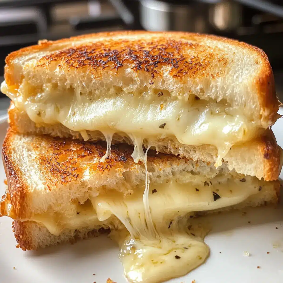 Wenn die Unterseite perfekt gebräunt ist, verwenden Sie einen Spatel, um die Sandwiches vorsichtig zu wenden. Braten Sie die andere Seite für weitere 4-5 Minuten, bis auch sie goldbraun und knusprig ist. Der Käse sollte nun wunderbar geschmolzen und der Duft des Knoblauchbrots durch die Küche ziehen.