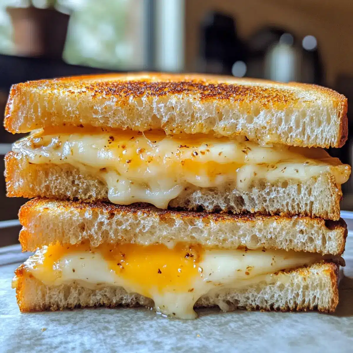 Temperatur beachten: Halte die Pfanne auf niedriger Hitze, damit der Käse langsam schmilzt und das Brot nicht verbrennt.