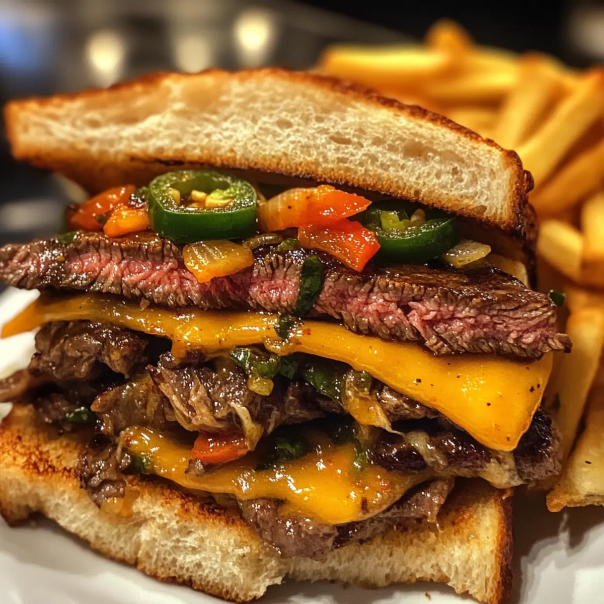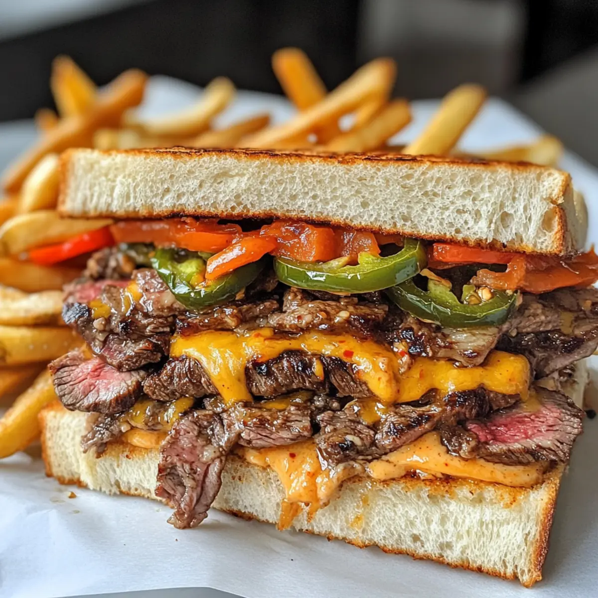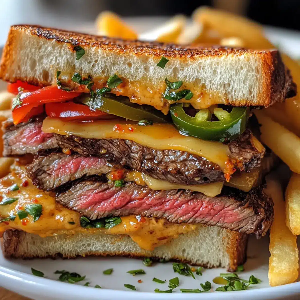 Fleischalternativen: Ersetze das Ribeye-Steak durch Sirloin oder Flanksteak, um verschiedene Geschmäcker zu genießen. Jedes hat seine eigene Textur, die dein Sandwich aufwerten kann.