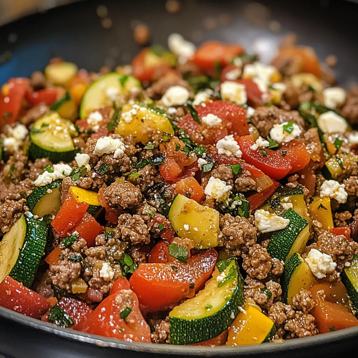 Das Mediterranes Rinderhackfleisch Pfannengericht Rezept ist eine großartige Wahl für Meal Prep! Du kannst das mageres Rinderhackfleisch bis zu 3 Tage im Voraus anbraten und in einem luftdichten Behälter im Kühlschrank aufbewahren, um die Zubereitungszeit zu verkürzen. Auch das Gemüse, wie die Zucchini und Paprika, lässt sich bis zu 24 Stunden im Voraus schneiden, um sie frisch zu halten. Wenn du bereit bist, das Gericht zuzubereiten, erhitzt du einfach das Fleisch mit den restlichen Zutaten in der Pfanne und lässt es für 2-3 Minuten köcheln. So erhältst du ein schnelles und köstliches Abendessen, das einfach und effizient ist! Achte darauf, die Aromen in der letzten Phase gut zu vermengen, um Qualität und Geschmack zu sichern.