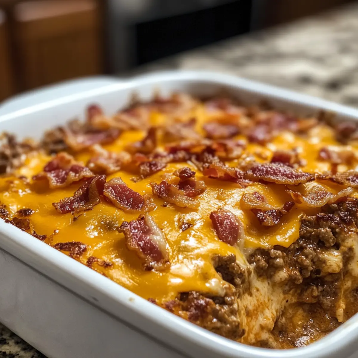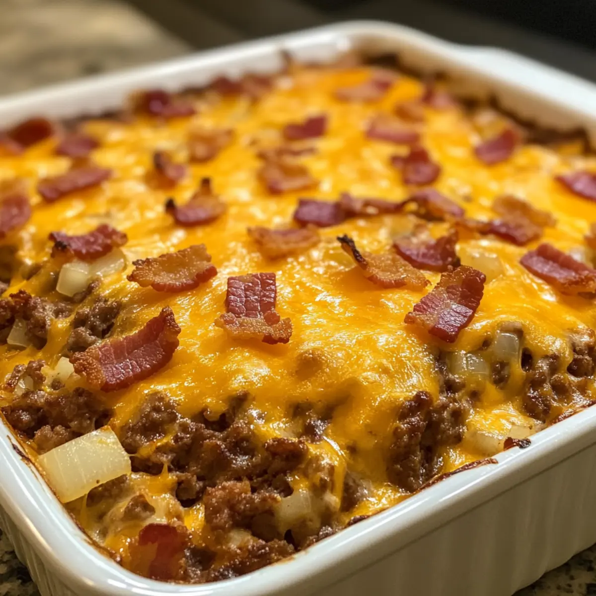 Schritt-für-Schritt-Anleitung für Niedrig-Kohlenhydrat Speck Cheeseburger Auflauf